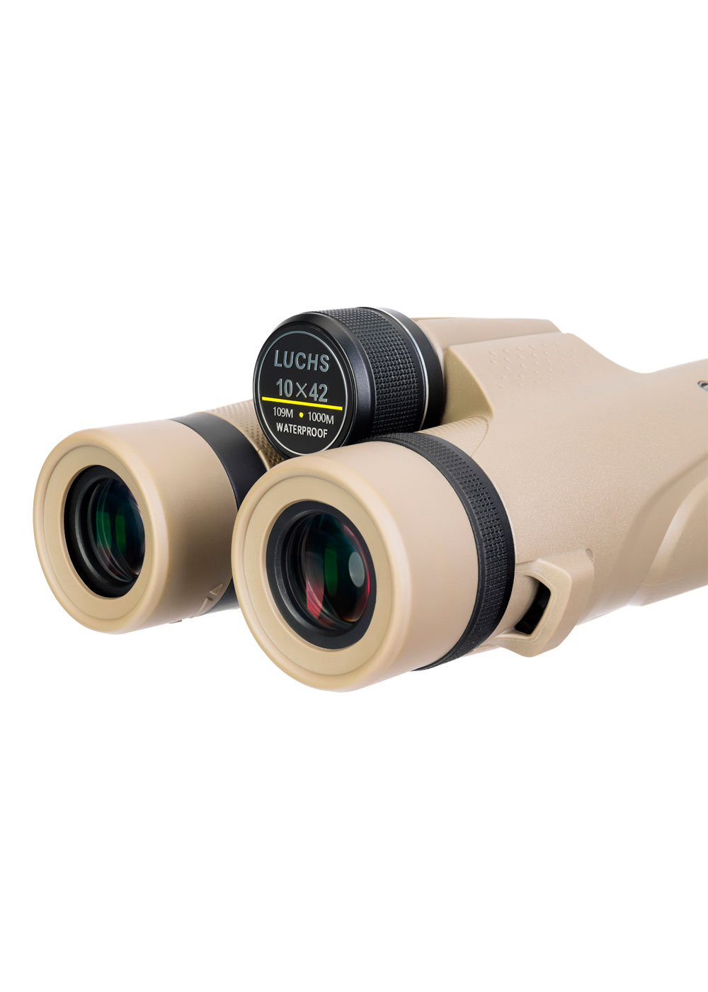 Оптика бинокля – это просветленные линзы и призмы из стекла K9, являющегося аналогом классического стекла BK-7. Передаваемое изображение получается четким, контрастным и ясным по всему полю зрения. Благодаря высокой светосиле бинокль эффективно работает и при слабой освещенности: в пасмурную погоду и в сумерках. Предусмотрены все необходимые настройки для регулировки резкости: в центре корпуса расположен барабан фокусировки, на правом окуляре находится кольцо диоптрийной коррекции. Тот, кто носит очки, оценит большой вынос выходного зрачка и наличие поворотно-выдвижных наглазников.