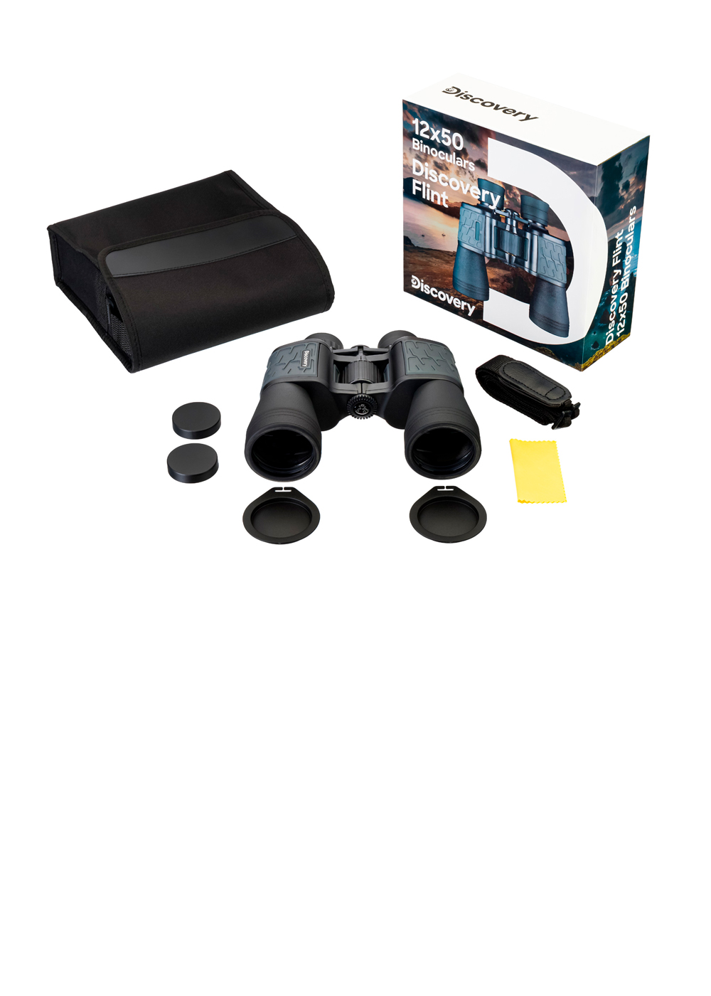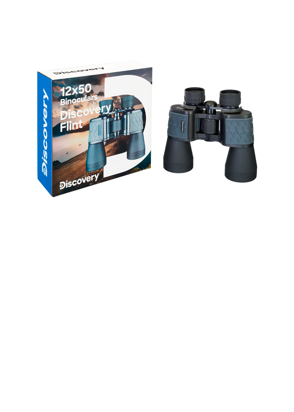 Levenhuk Discovery Flint 12x50 – универсальный бинокль с 12-кратным увеличением. Благодаря высокой кратности он идеально подходит для подробного изучения отдельных объектов, удаленных на значительное расстояние. Этот оптический прибор станет прекрасным выбором для охоты, похода или рыбалки. Он надежен, удобен в использовании и передает ясную и четкую картинку по всему полю зрения. Porro-призмы и линзы сделаны из оптического стекла BK-7. Также они дополнены несколькими слоями просветляющего покрытия, которое повышает контраст изображения и позволяет лучше различать мелкие детали объектов при наблюдениях в сумерках. Центральный барабан фокусировки удобно ложится под пальцы, что позволяет без труда настраивать резкость одной рукой. Для более точной настройки оптики можно использовать кольцо на правом окуляре, которое отвечает за регулировку диоптрий. Также можно выставить удобное расстояние между зрачками. Наглазники окуляров можно складывать и раскладывать.