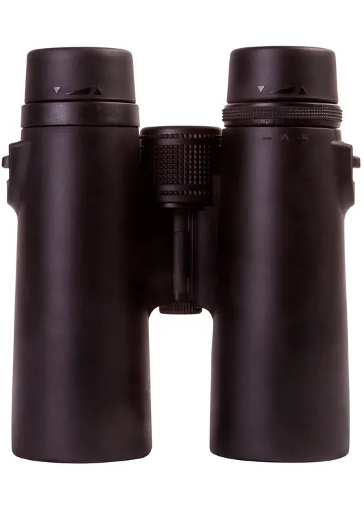 Оптика – это roof-призмы и линзы с многослойным просветлением. Они сделаны из стекла BK-7 и передают четкую и яркую картинку даже при слабой освещенности. Геометрия предметов не искажается, а цвета выглядят естественными и контрастными. Резкость регулируется при помощи центрального барабана фокусировки. У правого окуляра есть кольцо диоптрийной коррекции – с его помощью можно настроить оптику под особенности зрения. Поворотно-выдвижные наглазники сделаны из резины.