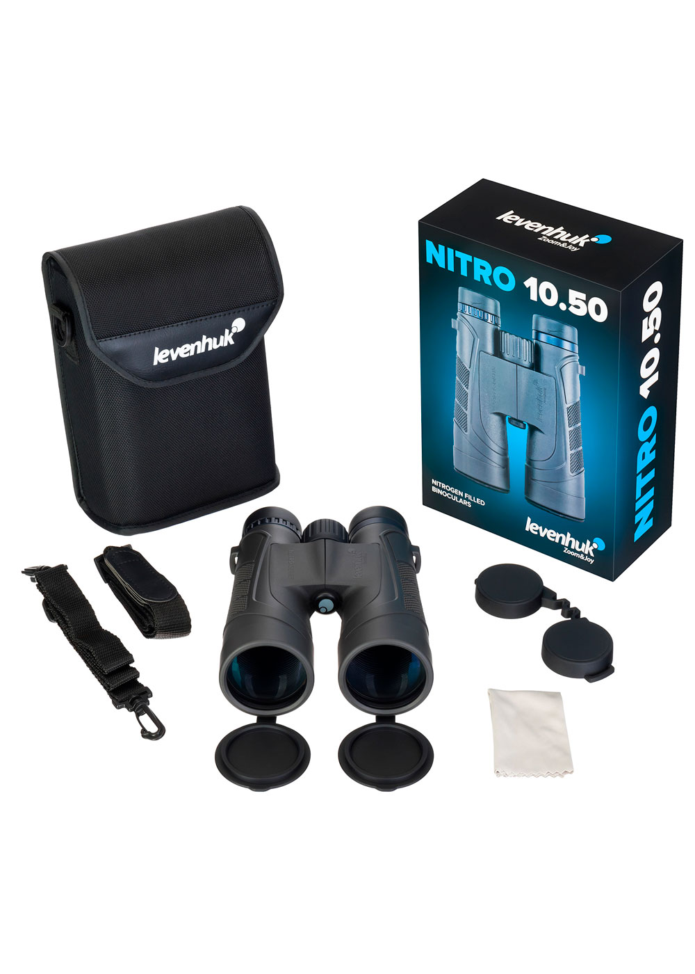 Бинокль Levenhuk Nitro 10x50 – это светосильный оптический прибор для охоты, рыбалки и профессионального применения. Он обеспечивает четкое и информативное изображение даже при недостатке света благодаря полному многослойному просветлению оптики и апертуре 50 мм. 10-кратное увеличение позволяет вести наблюдения на значительном удалении с рук или со стандартного штатива (адаптера нет в комплекте).