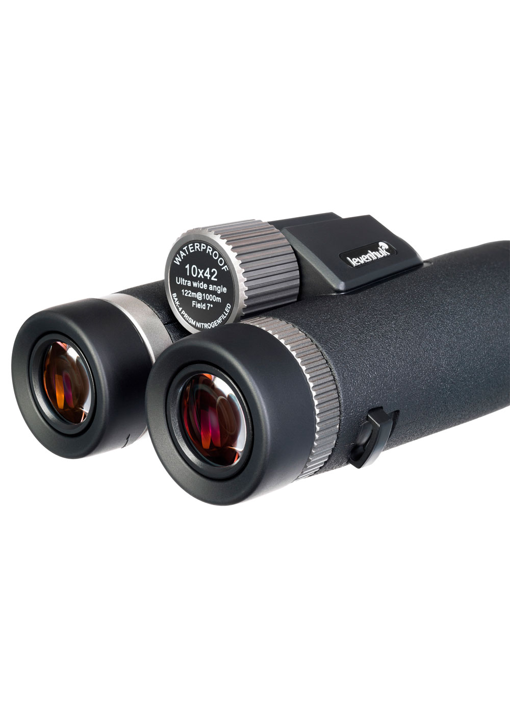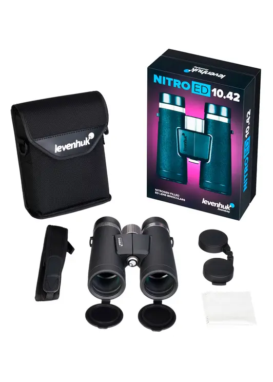 Levenhuk Nitro ED 10x42 оснащен ED-оптикой – бинокль порадует резкой картинкой без цветовых аберраций. Полное многослойное просветление элементов оптической системы позволило добиться высокого уровня светопропускания – изображение будет светлым, даже если на улице пасмурно. Прибор обладает оптимальным углом зрения для панорамных и прицельных наблюдений. Механизм фокусировки представлен удобным центральным барабаном.