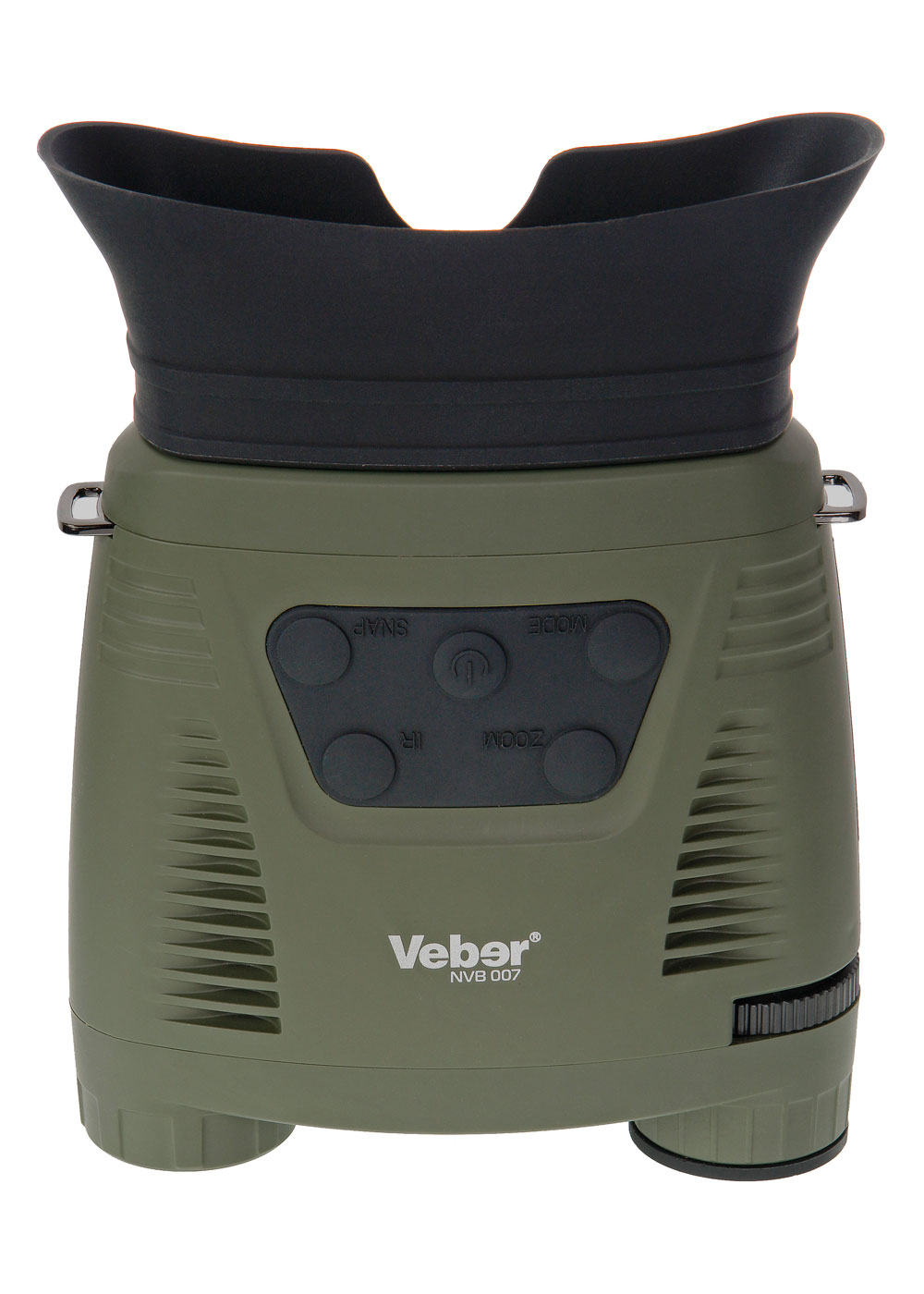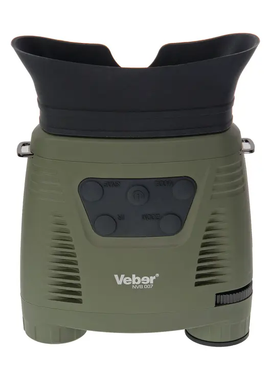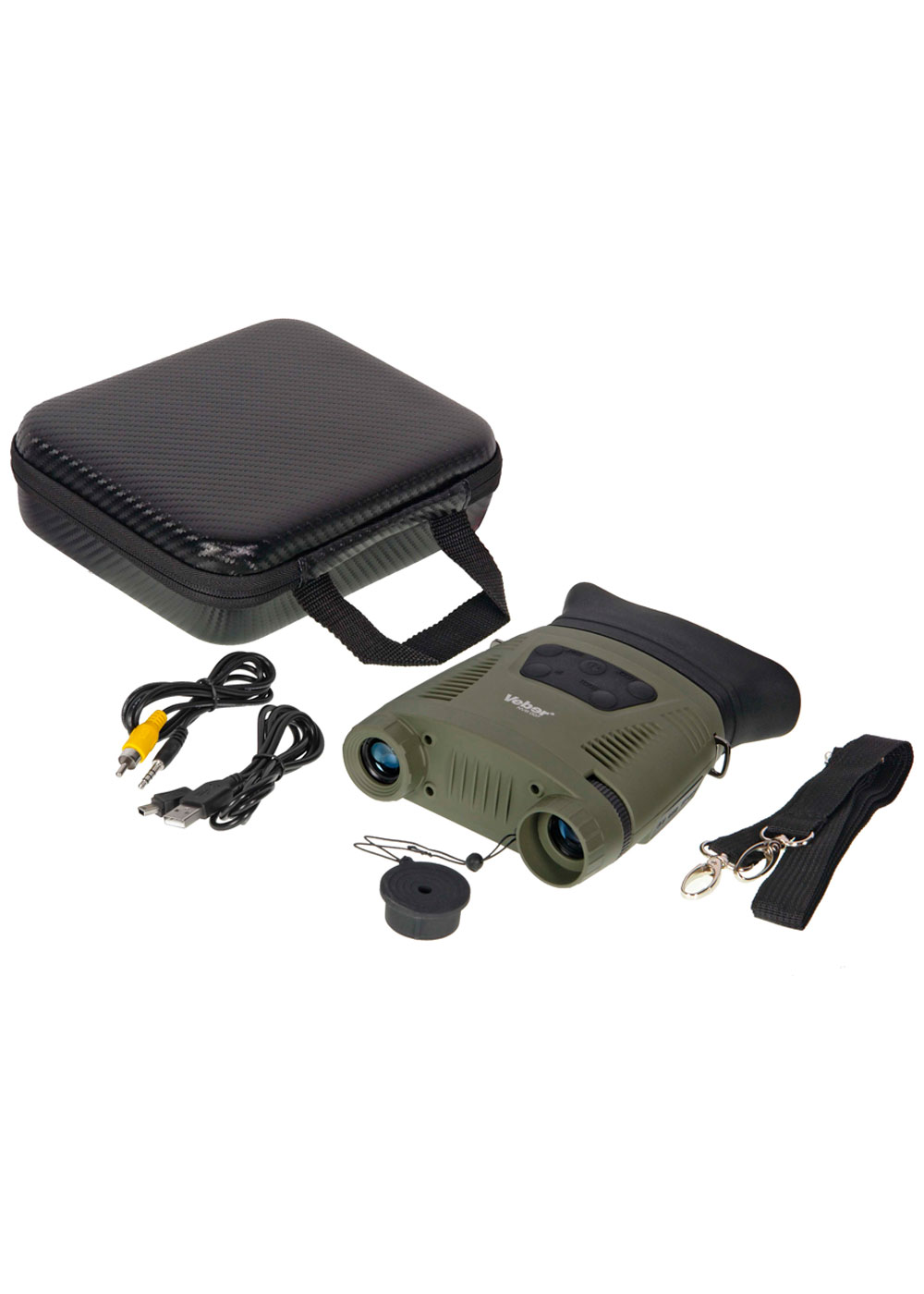 Бинокль ночного видения Veber NVB 007HD – цифровой бинокль с инфракрасным излучателем (ИК-подсветкой) и функциями съемки, хранения и воспроизведения отснятых материалов. Базовое увеличение бинокля 4х может быть расширено до 14х за счет цифрового (1х...3.5х).