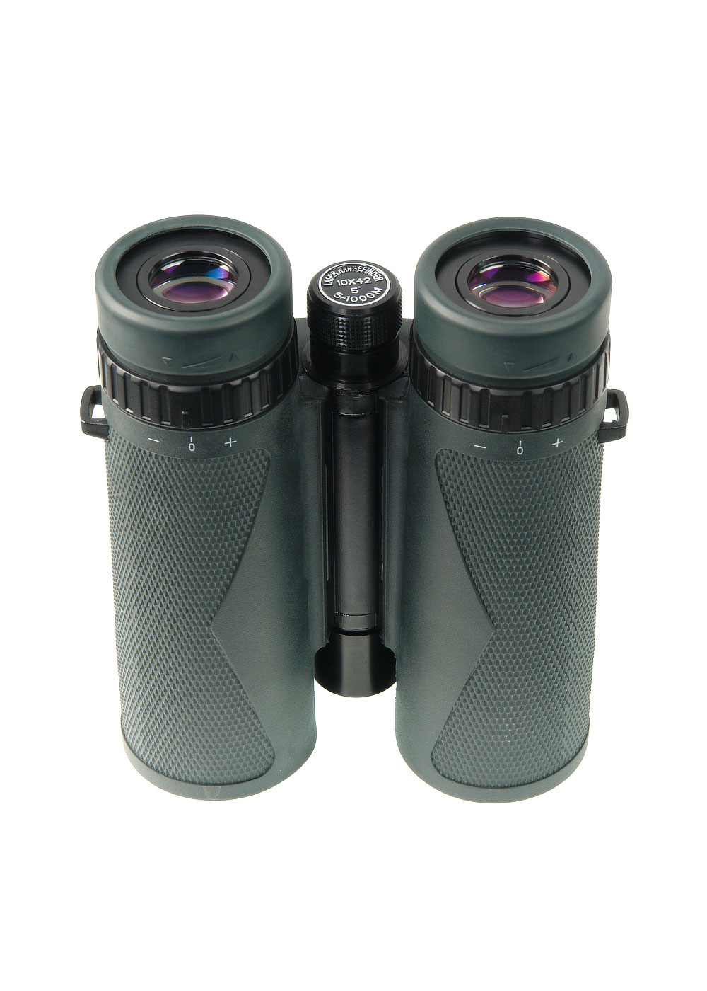 Объективы с линзами диаметром 42 мм формируют изображение с высокой яркостью и контрастностью. В конструкции бинокля используются roof-призмы, конструкция которых обеспечивает компактность корпуса – его толщина всего 62 мм. На линзы нанесено многослойное просветляющее покрытие, поэтому картинка получается чистой, четкой и яркой. Просветленная FMC оптика бинокля дает возможность использовать устройство в неблагоприятных погодных условиях или в сумерках.