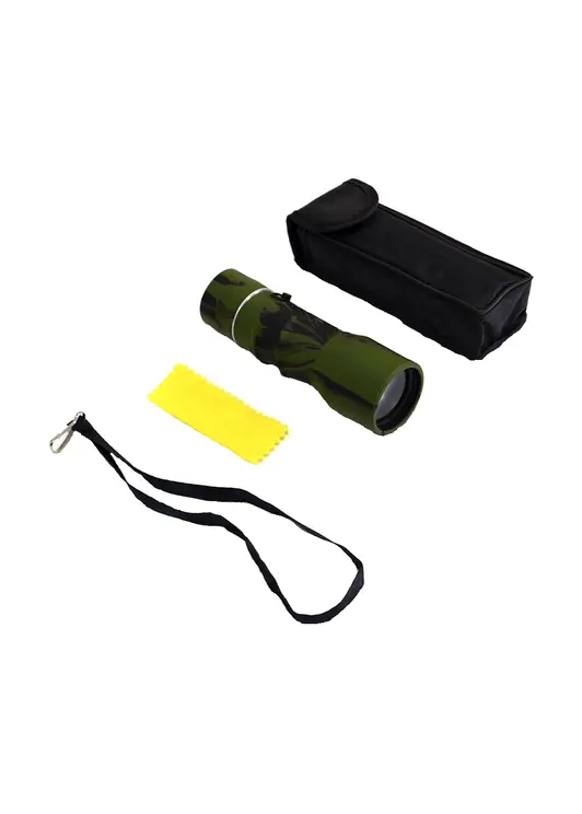 Монокуляр обеспечивает яркое и качественное изображение за счет линз с многослойным покрытием. Для удобства ношения в комплект входят шейный ремешок и удобный футляр.