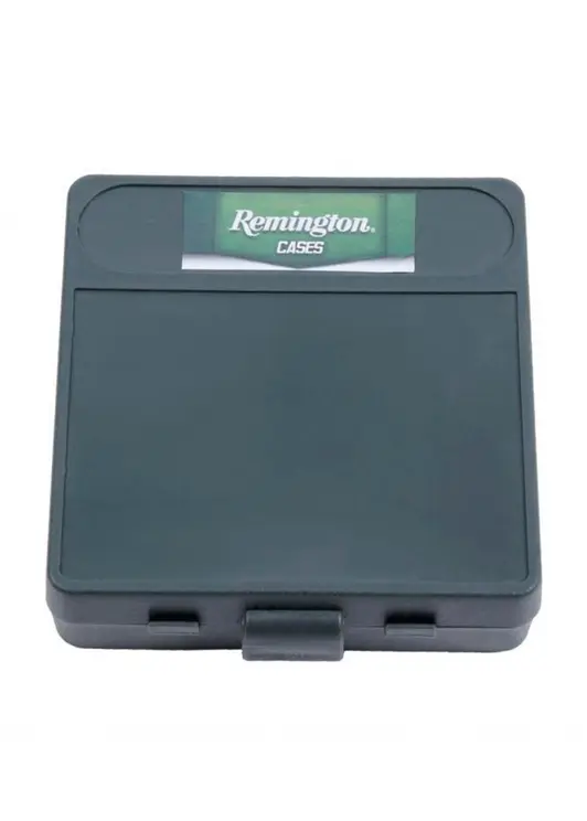 Кейс от компании Remington. Кейс предназначен для хранения и перевозки патронов. Имеет откидную крышку на петлях с защелкой. Вмещает 100 патронов калибра .9 мм. Материал: пластик. Цвет: зеленый.