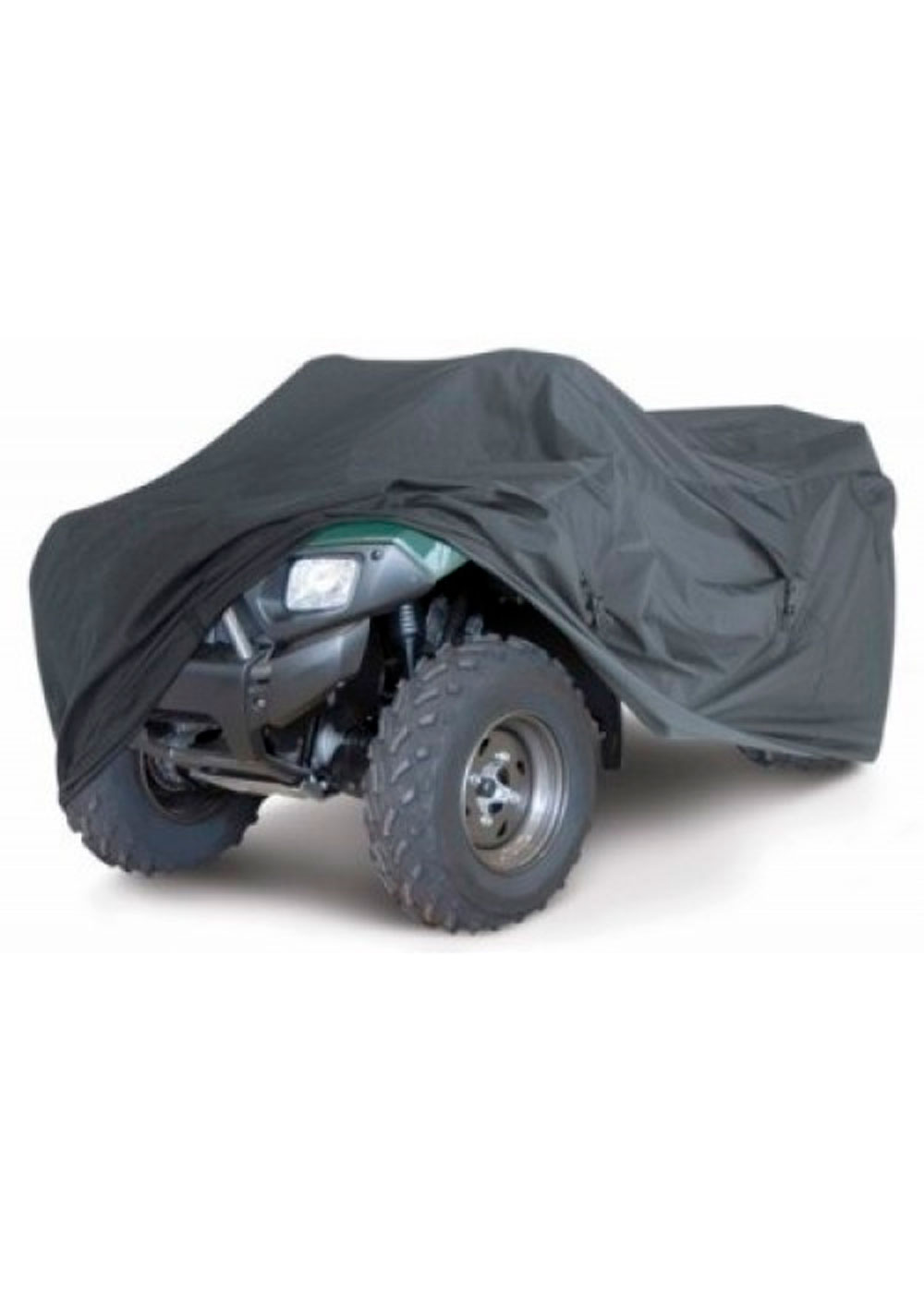 Этот чехол предназначен для квадроциклов с размерами 251 x 125 x 85 см и весом до 330 кг. Он изготовлен из прочного материала, обеспечивающего защиту от солнца, дождя и снега. Чехол имеет ручки для переноски и отверстия для колес, фар и других элементов квадроцикла.