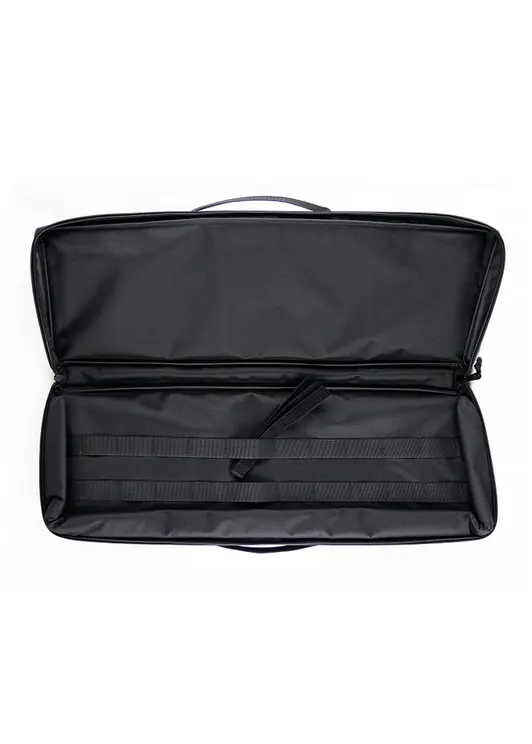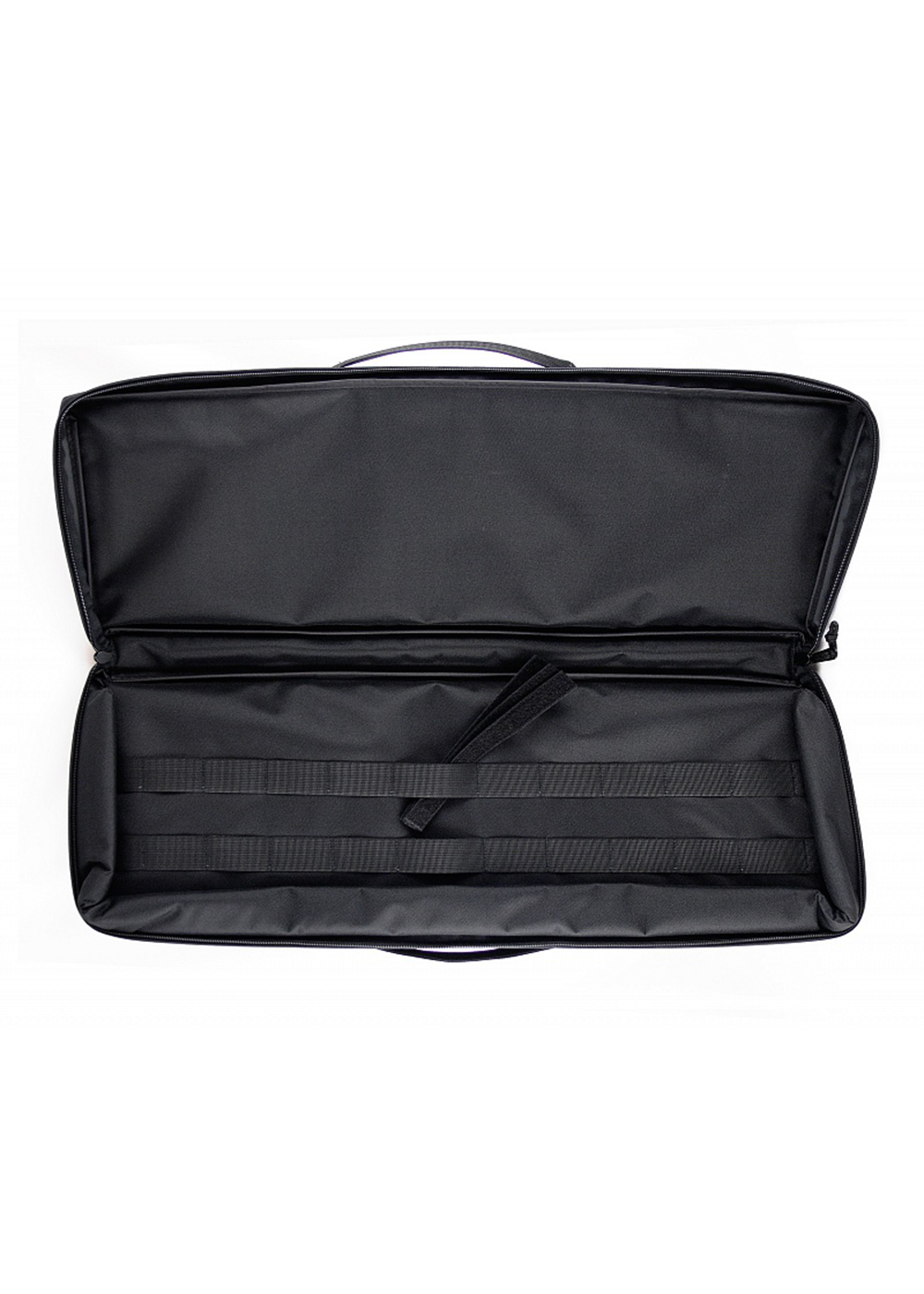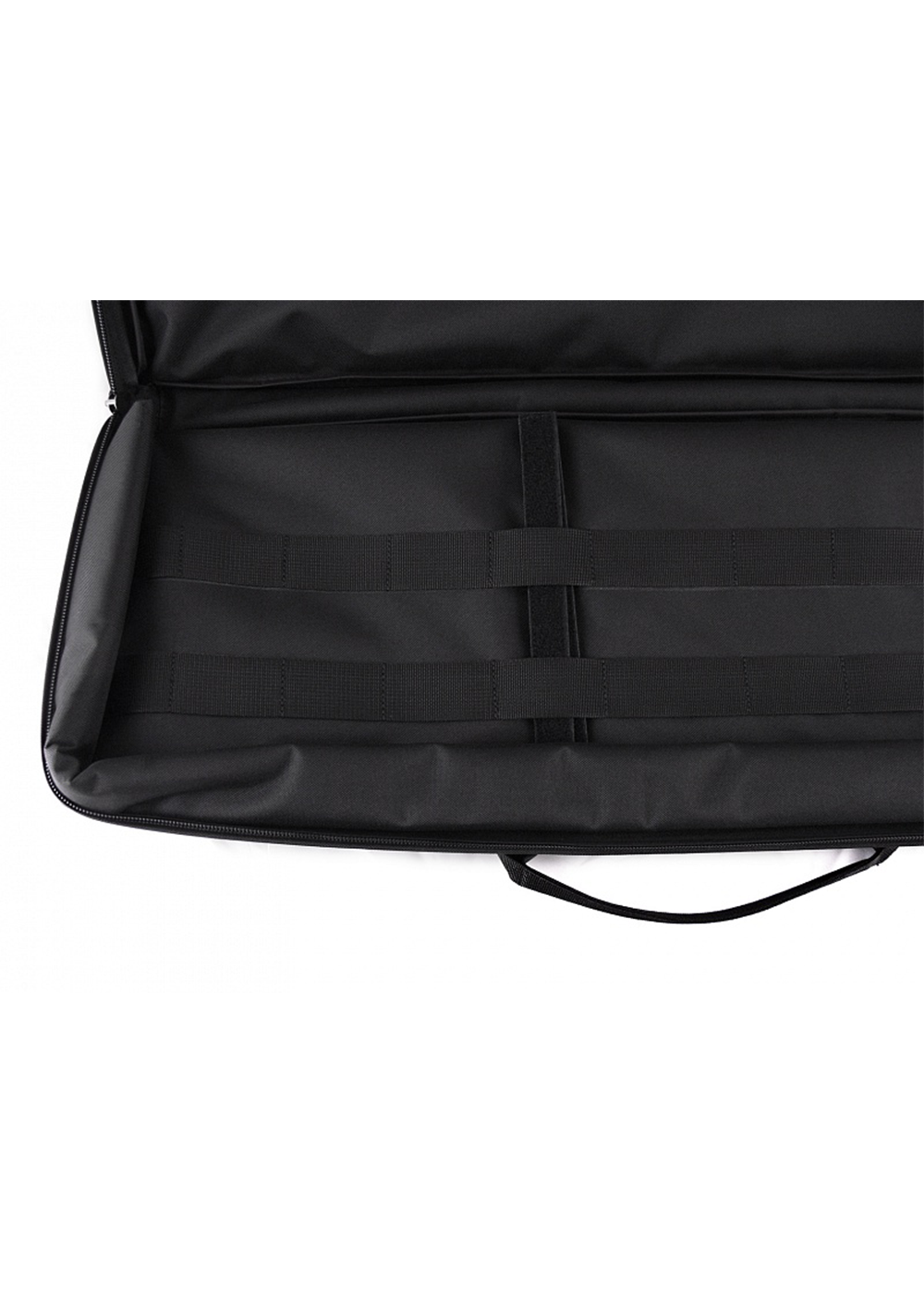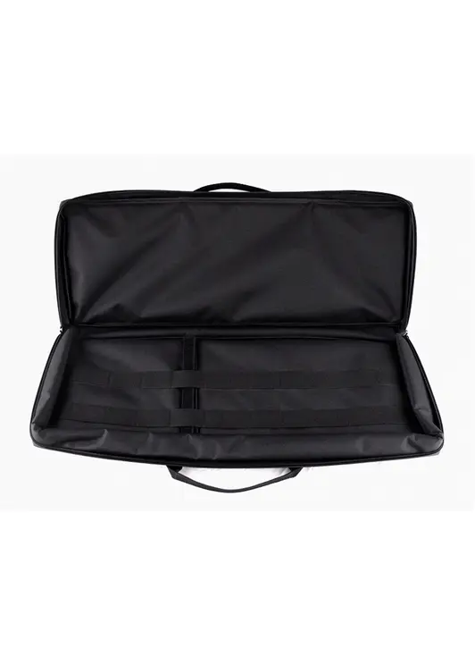 Кейс Vektor A-8-1 черного цвета имеет габариты 82х30х6 см и выполнен из капроновой ткани с внутренним слоем пенополиэтилена для надежной защиты оружия при транспортировке. Конструкция включает одно основное отделение с системой крепления «молле» и дополнительный карман с отделением под магазины. Кейс оснащен двухзамковыми молниями для надежной фиксации содержимого, имеет удобные ручки для переноски и регулируемый плечевой ремень на обратной стороне