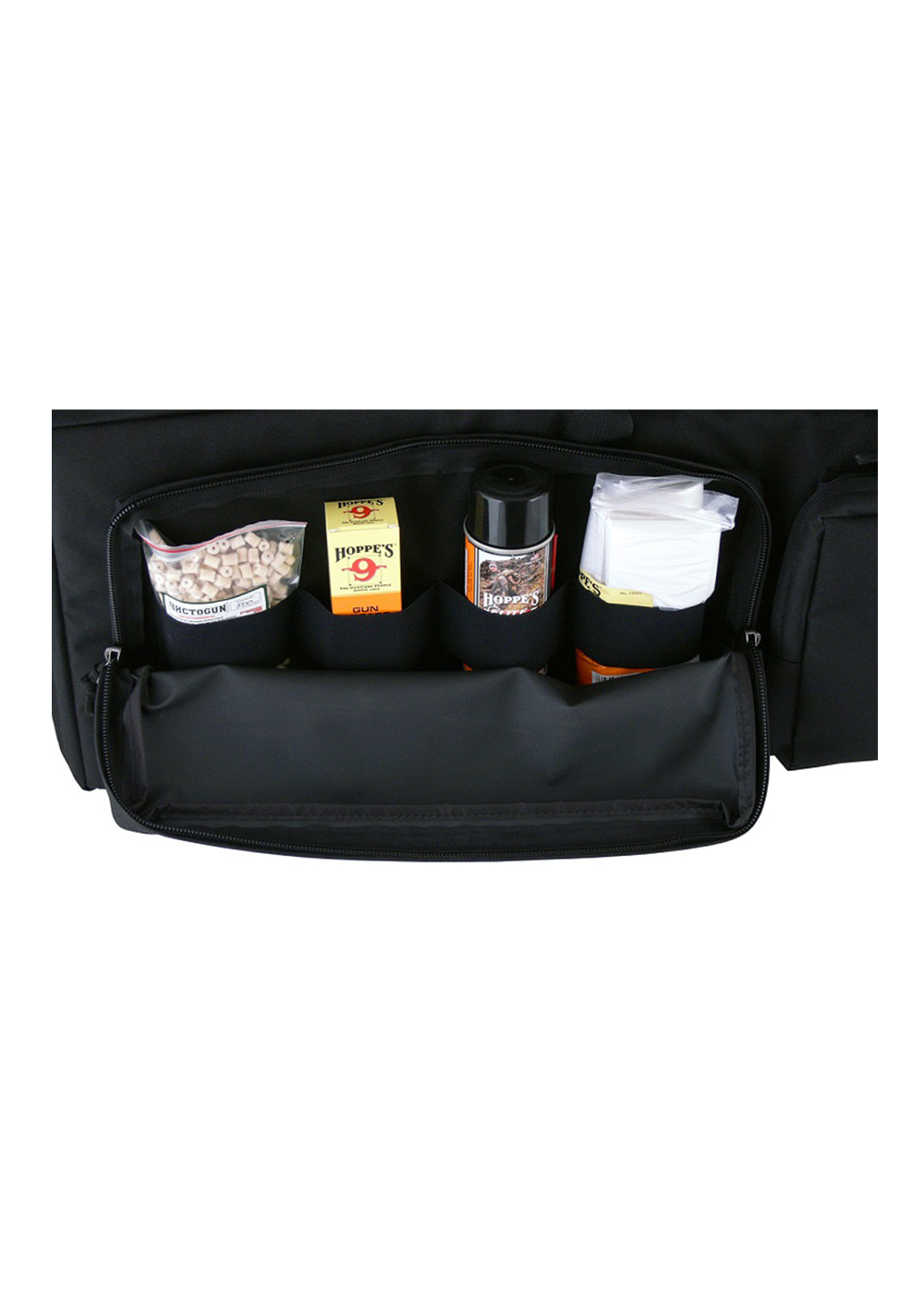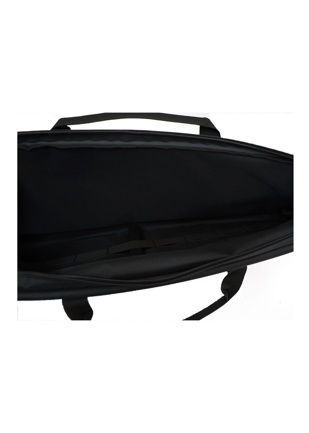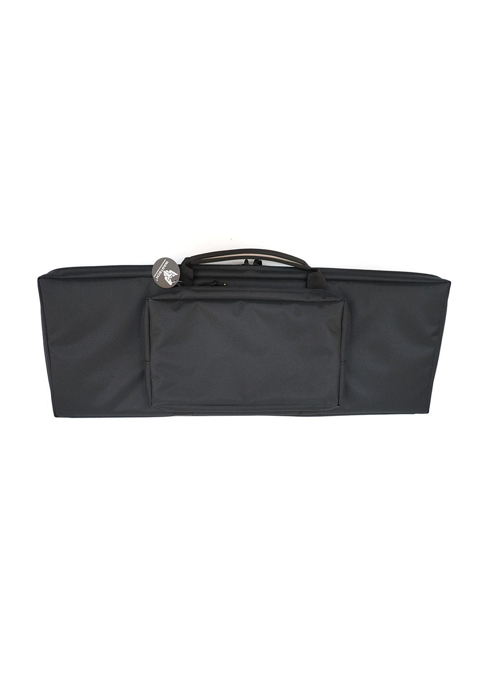 Кейс Vektor A-8-1 черного цвета имеет габариты 82х30х6 см и выполнен из капроновой ткани с внутренним слоем пенополиэтилена для надежной защиты оружия при транспортировке. Конструкция включает одно основное отделение с системой крепления «молле» и дополнительный карман с отделением под магазины. Кейс оснащен двухзамковыми молниями для надежной фиксации содержимого, имеет удобные ручки для переноски и регулируемый плечевой ремень на обратной стороне