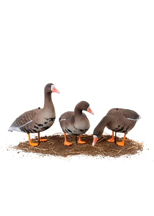 Чучела из мягкого пластика бренда Softplast® – очень реалистичные. Изделие сохраняет эластичность в широком температурном диапазоне от + 40 до – 40 ˚С. Материал долговечен и износостойкий. При небольшом ветре за счет малого веса чучела начинают двигаться, что создает впечатление «кормящейся стаи». Можно использовать как на поле так и на воде. Имеют неразрывный шов. Размер чучела Over Size.