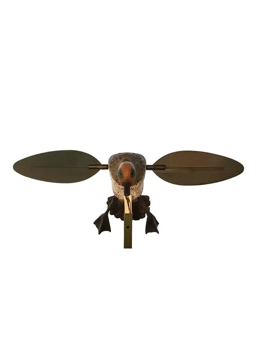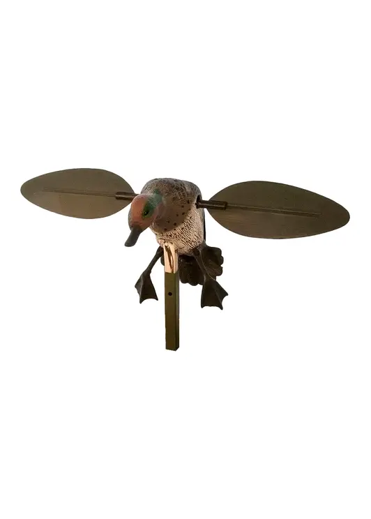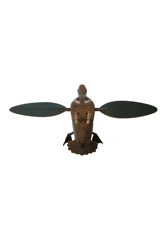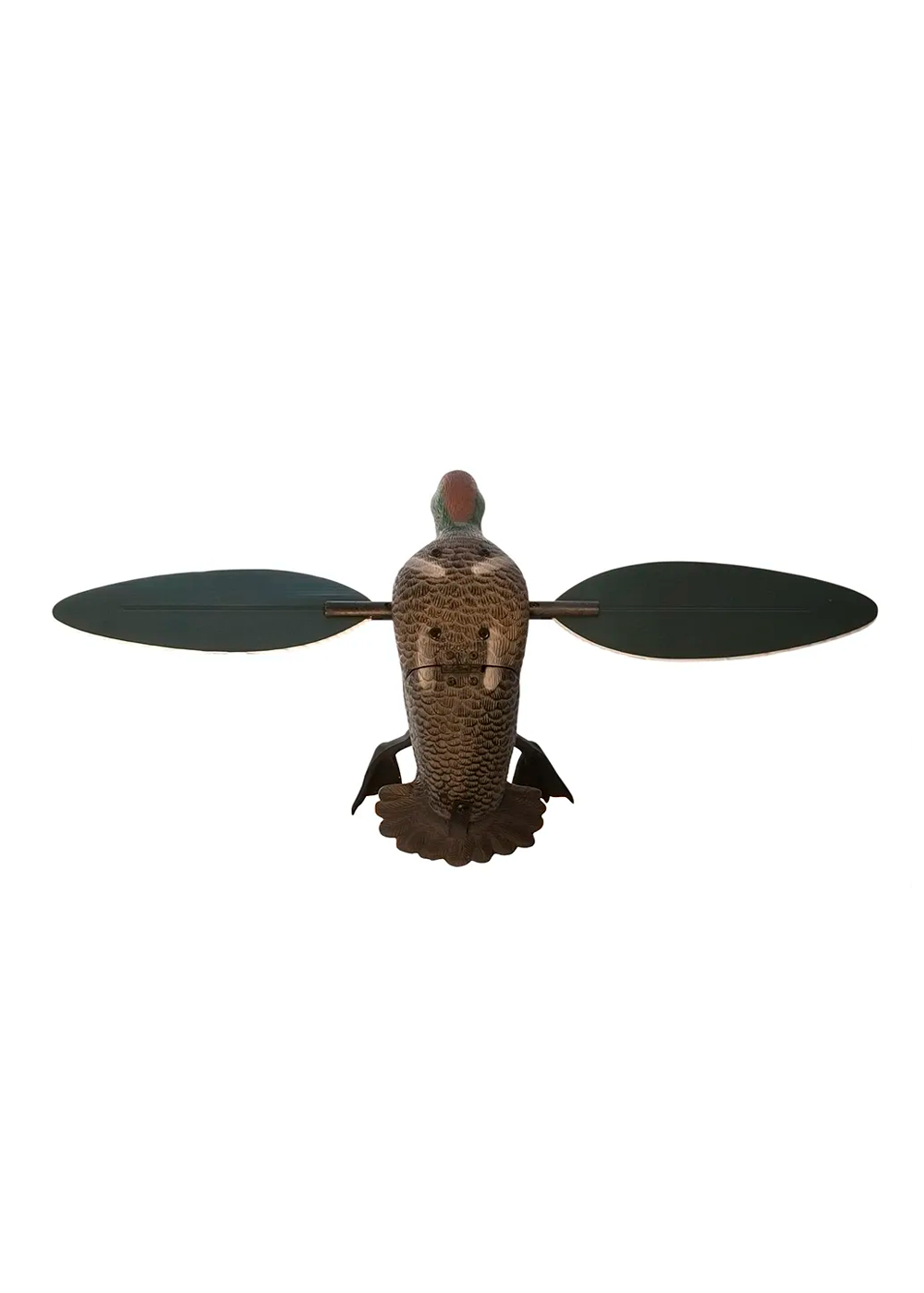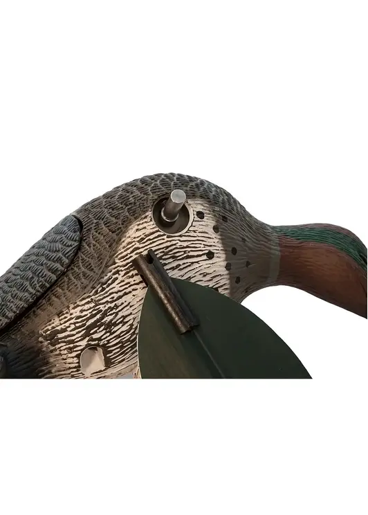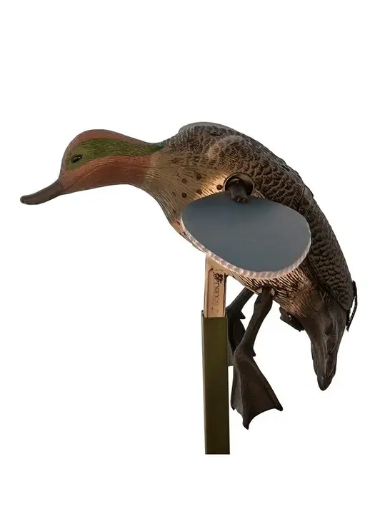 Механическое чучело утки машущей крыльями “TEAL” Mojo (чирок) представляет собой высокотехнологичное и реалистичное средство для привлечения водоплавающих птиц на охоте. Взмахи крыльев обеспечиваются ротационным двигателем, что создает эффект живой утки. Чучело выполнено с соблюдением размеров и пропорций реальных птиц, имеет детальную раскраску, что делает его практически неотличимым от настоящего чирка. Облегченные крылья изготовлены из ударостойкого ПВХ и фиксируются на винтах, что обеспечивает их долговечность и надежность. Работает на четырех батарейках типа АА, обеспечивая непрерывную работу до 16 часов. В комплект входит разборной шест для установки, что делает чучело удобным для транспортировки и хранения. Это надежное и эффективное средство для охоты на водоплавающих птиц, обеспечивающее высокую степень реализма и продолжительную работу.