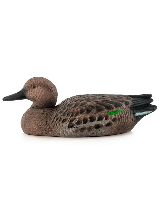 Чучело утки "Чирок-свистунок утка". Исполнение - "рельеф". Легкое, компактное чучело чирка-свистунка, предназначенное для приманивания летящих уток в процессе весенней или осенней охоты. Изготовлено из полистирола (пенопласта) высокой плотности (прочный, не крошится). Голова у муляжа съемная, крепится к туловищу с помощью стального штыря. Для транспортировки голову можно убрать в специальную нишу в нижней части туловища утки, что делает данные чучела более компактными по сравнению с аналогами и позволяет брать большее кол-во. Рифленная (рельефная) поверхность с качественной (реалистичной) многоцветной покраской матовой не бликующей краской и прорисовкой пера. При попадании дроби остаются на плаву. Имеется крепление для шнура или грузила.