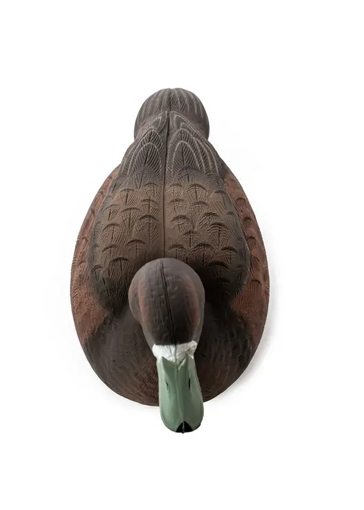 Чучела изготовлены из ударопрочного пластика. Комплект состоит из 6 чучел (2 селезня активные, 2 селезня отдыхающие, 2 утки). Реалистичная антибликовая окраска. Сбалансированный, утяжеленный киль придает лучшую устойчивость чучела на воде при сильном ветре и больших волнах. В задней и передней части киля имеются отверстия для крепления шнура и грузила.