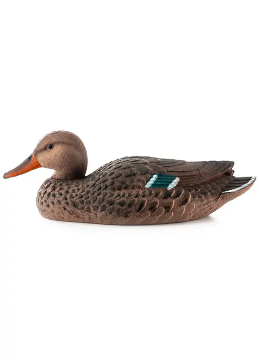 Утиное чучело "Кряква утка". Исполнение - "рельеф". Легкое, компактное чучело, предназначенное для приманивания летящих уток в процессе весенней или осенней охоты на водоплавающую дичь. Изготовлено из полистирола (пенопласт) высокой плотности (прочный, не крошится). Голова съемная, крепится к туловищу на стальной штырь. Для транспортировки голова может сниматься и укладываться в специальную нишу (в нижней части туловища утки), что делает данные чучела более компактными по сравнению с аналогами и позволяет брать большее кол-во. Рифленная (рельефная) поверхность с качественной (реалистичной) многоцветной покраской матовой не бликующей краской и детальной прорисовкой пера. При попадании дроби остаются на плаву. Имеется крепление для шнура или грузила.