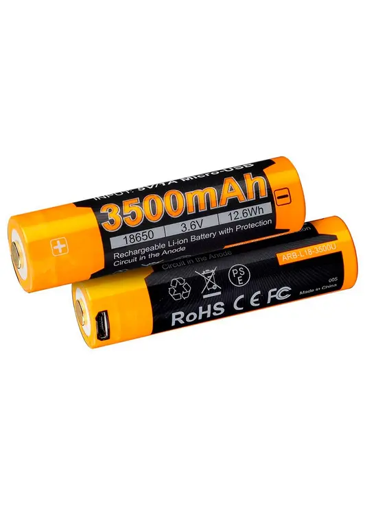 Аккумулятор Fenix 18650 с разъемом для USB ARB-L18-3500U используется для питания различных приборов, например, пультов, плееров, фонарей и т.п. Литий-ионный аккумулятор оснащен разъемом USB, что позволяет заряжать его от различного оборудования через кабель. Также изделие оснащено светодиодной индикацией, которая отображает начало и конец зарядки. Аккумулятор обладает защитой от излишнего перегрева, короткого замыкания, а также от чрезмерного заряда и разряда.