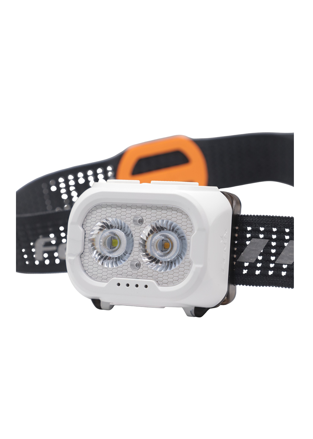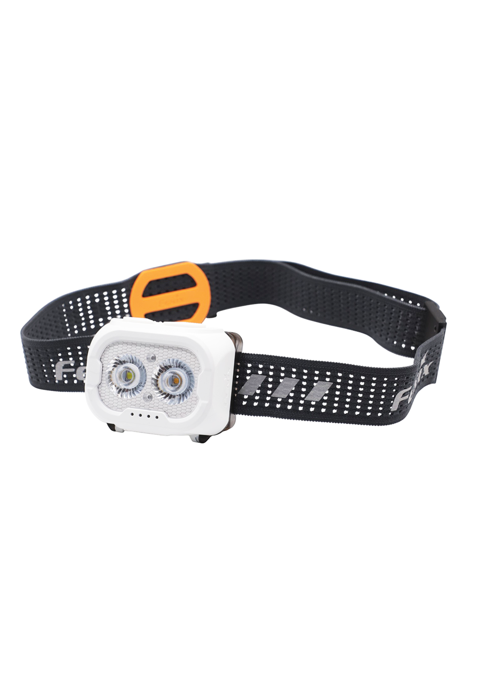 Налобный фонарь Fenix HL18R-T V2.0 в белом исполнении с черным ремешком — это многофункциональное осветительное устройство с тремя типами освещения: холодным белым, теплым белым и красным светом. Максимальная яркость достигает 800 люмен, а дальность луча составляет 125 метров. В конструкции использованы четыре светодиода: холодный Luminus SST25, теплый SST20 CRI80 и два красных 2835. Фонарь оснащен 10 режимами работы, включая различные уровни яркости для каждого типа света. Холодный свет обеспечивает максимальную яркость 800 люмен с временем работы 3 часа 20 минут, теплый свет достигает 500 люмен и работает до 4 часов 15 минут, а красный свет может функционировать в постоянном режиме до 50 часов или в режиме SOS до 100 часов. Устройство оснащено аккумулятором емкостью 1900 мАч с возможностью зарядки через USB Type-C (полная зарядка за 3 часа) и совместимо с тремя батарейками AAA. Управление осуществляется двумя верхними переключателями, а боковой слайдер-блокиратор предотвращает случайное включение.