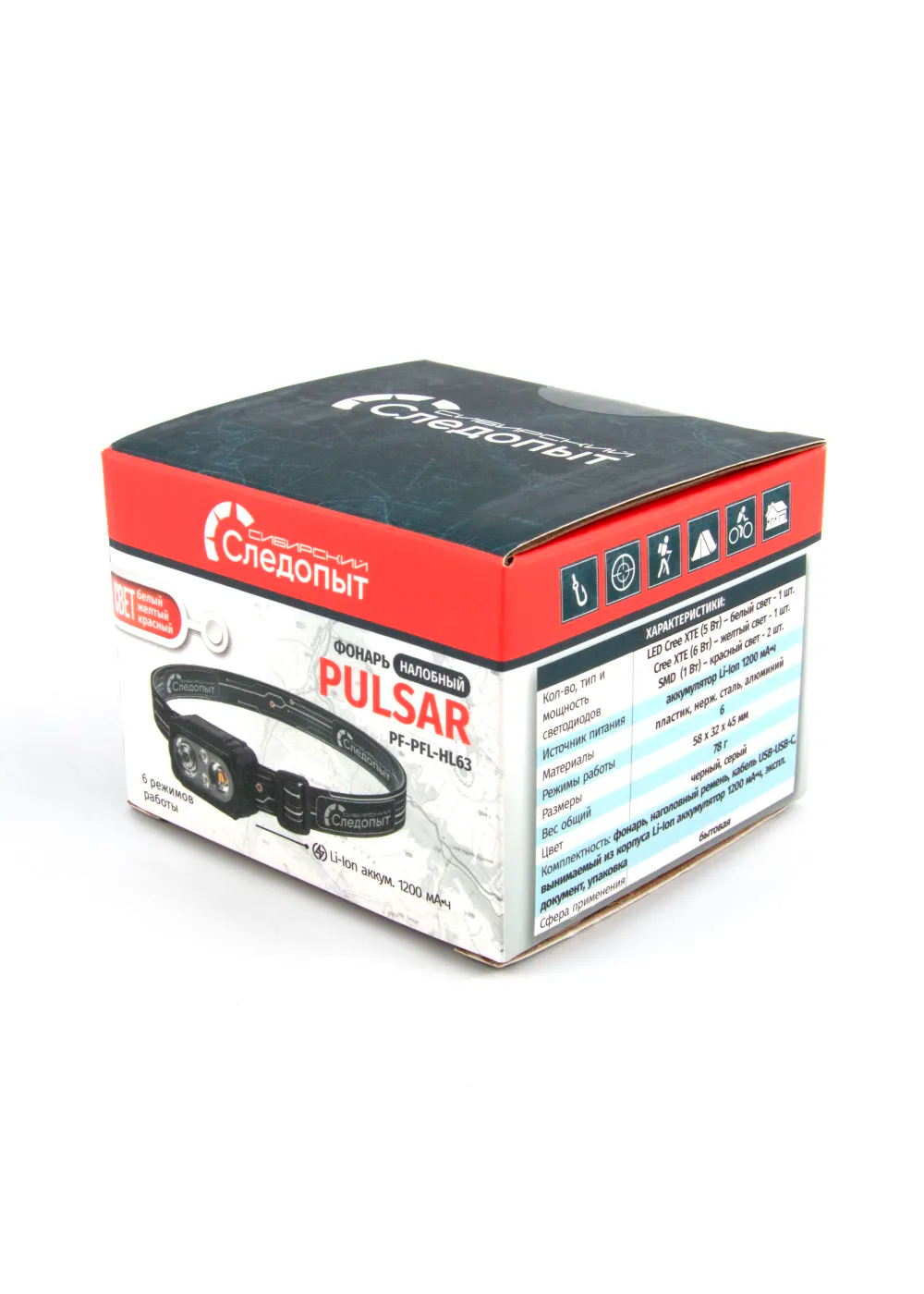 Фонарь налобный "СИБИРСКИЙ СЛЕДОПЫТ-PULSAR" оснащён двумя яркими светодиодами и двумя светодиодами типа SMD, что обеспечивает высокую эффективность освещения. Аккумулятор на 220 В/100 А позволяет использовать фонарь до 8 часов без подзарядки. Особенности фонаря включают: лёгкий вес,возможность использовать батареи 3хААА,а в это время съемный акк-р можно зарядить, кнопки управления светодиодами для настройки яркости и режима работы, возможность зарядки от ноутбука или пауэрбанка.