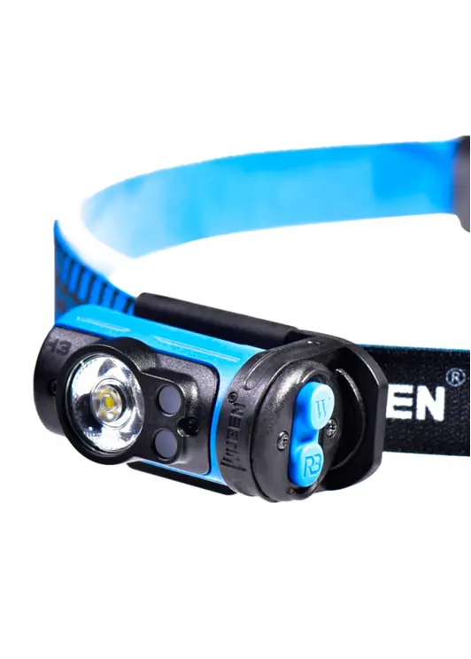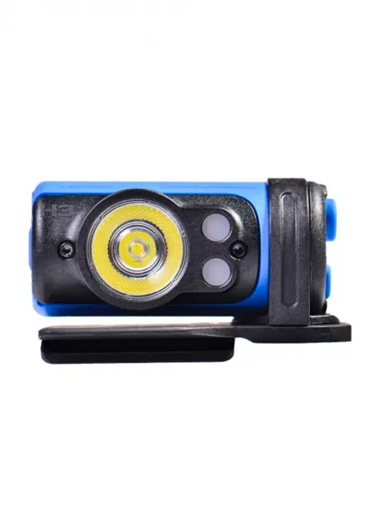 Яркий налобный мультифункциональный светодиодный фонарь. За счёт вращения на 360° может использоваться как налобный или ручной фонарь-прожектор. 4 режима работы, в т.ч. SOS. Яркость: Max(120LM) - Med(50LM) - Min(1LM) - SOS(100LM), дальность 53м, время : 2ч – 7ч- 105ч. Интенсивность светового луча: 700 кд. Светодиод 1*OSRAM P8 LED. Батарея 2 X AAA. Дополнительный свет: красный (3LM)-синий (3LM)-красный мигающий (3LM). Вращение на 360°. Две кнопки включения основных и дополнительных режимов. Время работы: 20ч- 25ч. Ударопрочность: 1,5 м. Пылебрызговлагозащита: IP65. Цветовая температура: 6500K. Выбор выходного сигнала по умолчанию, функция памяти. Размер: 56 × 25 × 25mm. Вес: 26гр (без батареи)/ 44 гр. (с батареей). Цвет-чёрно-синий.