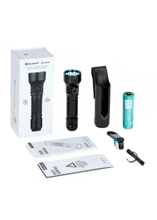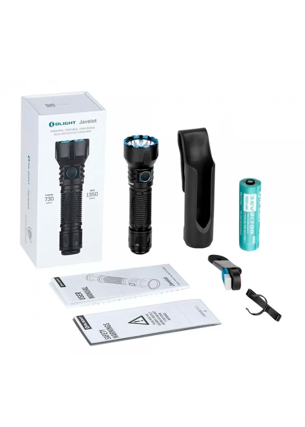 Подствольный тактический фонарь Olight Javelot Matte Black от компании (Олайт) работает на светодиоде FL-LM020 мощностью 1350 люмен и дальностью светового потока 730 метров. Фонарь поставляется с кастомным Li-ion аккумулятором Li-ion Olight ORB 217C50 5000 мАч, который заряжается комплектным переносным магнитным USB кабелем Olight MCC3 током 2 Ампера.