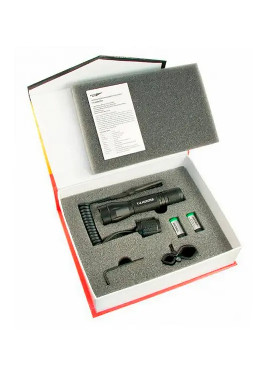 “Яркий Луч T6 Hunter” - подствольный фонарь с двумя светодиодами CREE XP-2 и общей мощностью 400 лм. Работает от двух батареек CR123. В комплекте есть выносная кнопка для удобного управления фонарем.