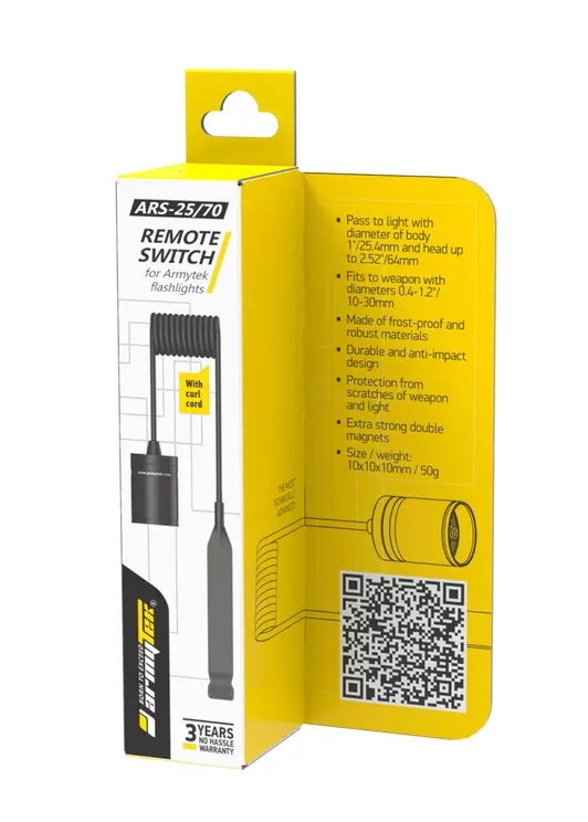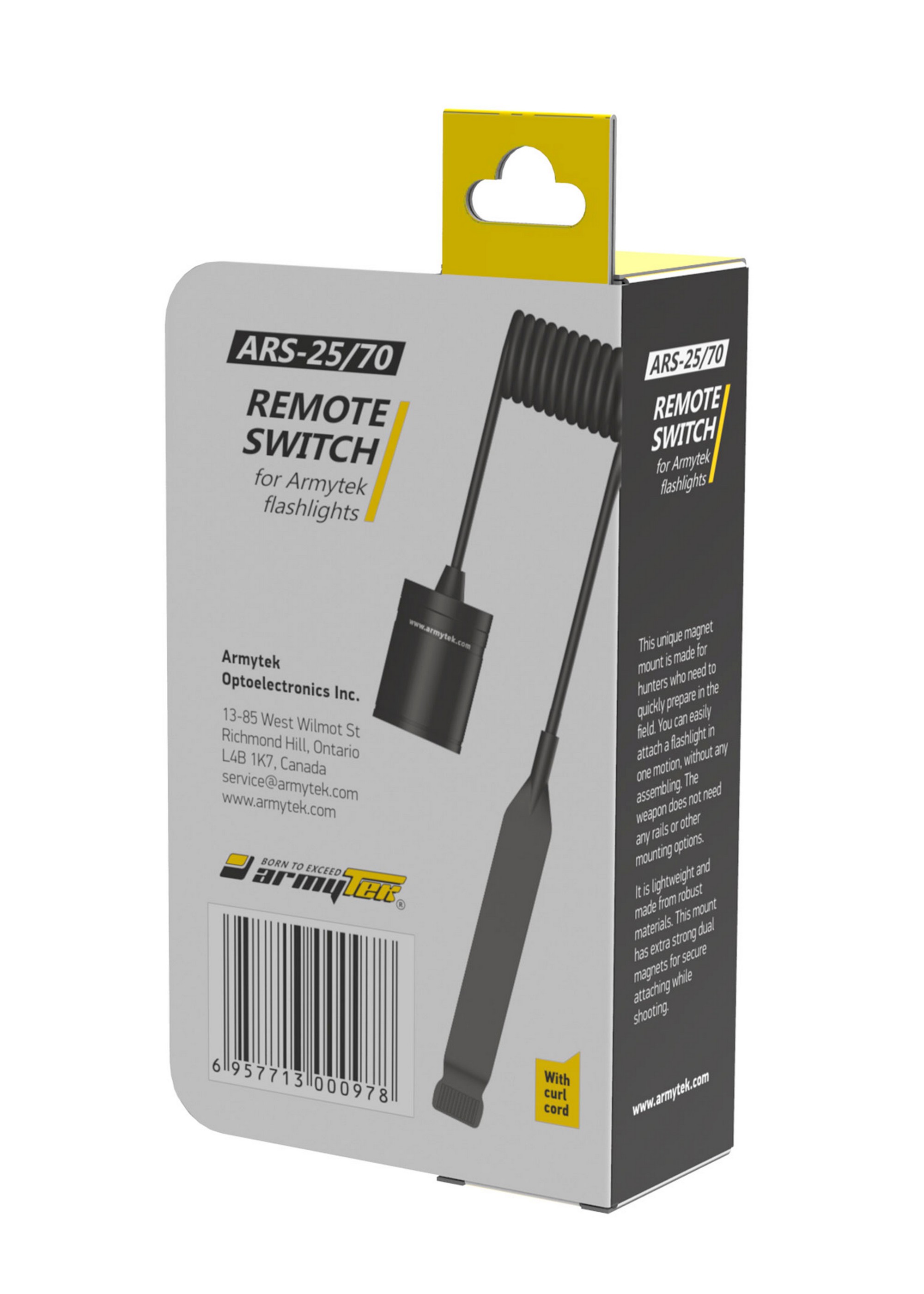 Выносная кнопка ArmyTek ARS-01 - это аксессуар для фонарей ArmyTek. Она позволяет управлять фонарем на расстоянии до 70 см. Кнопка витая, изготовлена из прочных материалов и имеет длину 25-70 см. С помощью кнопки можно включать и выключать фонарь, а также изменять режимы работы.