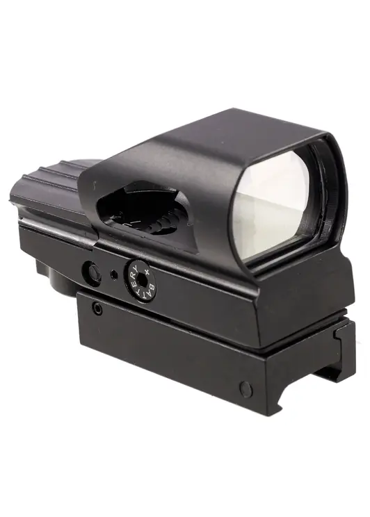 Коллиматор прицел дает пользователю выбор между 4 прицельными марками. Проворачивая маховик в тыльной части корпуса можно выставить следующие сетки прицела: традиционный dot, точку в круге, перекрестие с точкой и комбинацию приведенных марок. Изображение отображается в красном цвете.