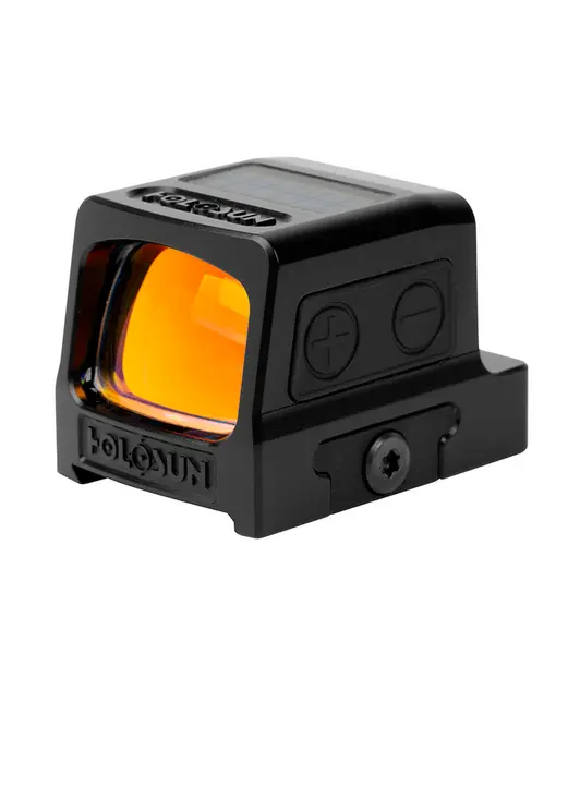 HE509T-RD — это коллиматорный прицел закрытого типа с титановым корпусом, разработанный для установки на пистолеты (в комплекте адаптер для стандарта RMR). Особенности включают в себя титановый корпус, Super LED Holosun с временем автономной работы от батареи до 50 000 часов, системы Multi-Reticle System, Shake Awake и Solar Failsafe. В качестве источников питания используются солнечная батарея и элемент CR1632. Система Solar Failsafe позволяет прицелу оставаться включённым, когда батарея выходит из строя, а также отвечает за автоматическую регулировку яркости. Технология Holosun Shake Awake за счёт датчика движения отключает светодиод во время периодов неподвижности и мгновенно активирует его при малейшем движении. Время, необходимое для выключения светодиода (перехода в спящий режим), программируется пользователем.