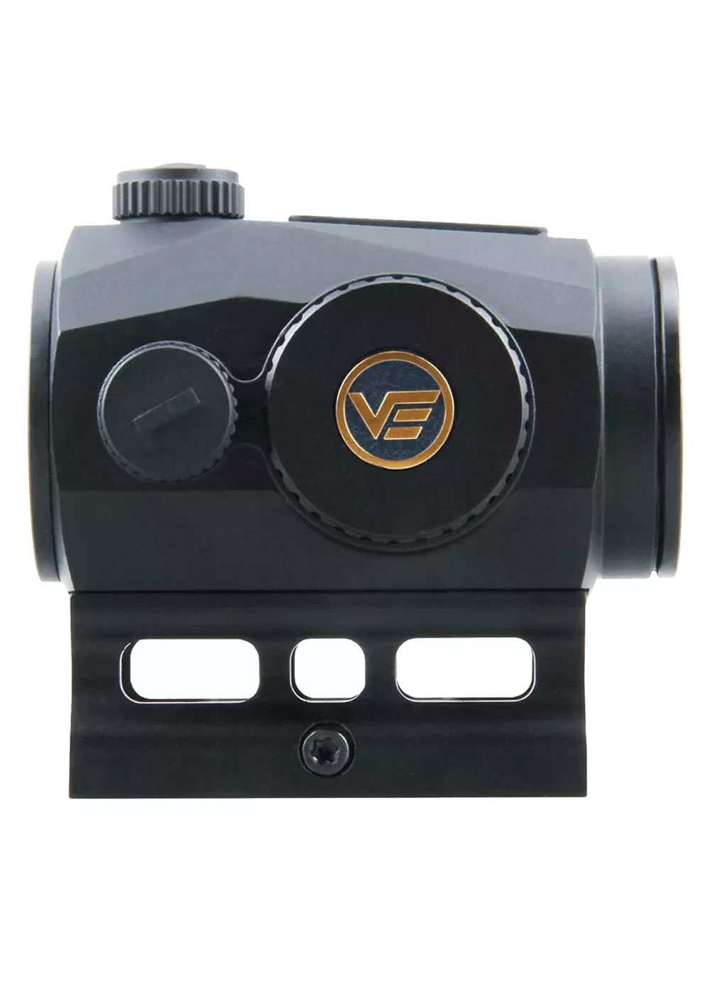 Vector Optics SCRAPPER 1x25 - легкий и удобный прицел с красной точкой 2 MOA Direct Bulb. Благодаря своей универсальности его можно использовать в охотничьей, спортивной и тактической стрельбе. Эта модель оснащена 10 уровнями яркости точки прицеливания: 8 уровней подходят для дневного света и 2 для ночного видения. Они настраиваются с помощью кнопок, расположенных в верхней части прицела, такое решение делает настройку быстрой и легкой. Благодаря солнечной панели установленной сверху, может работать до 180,000 часов.