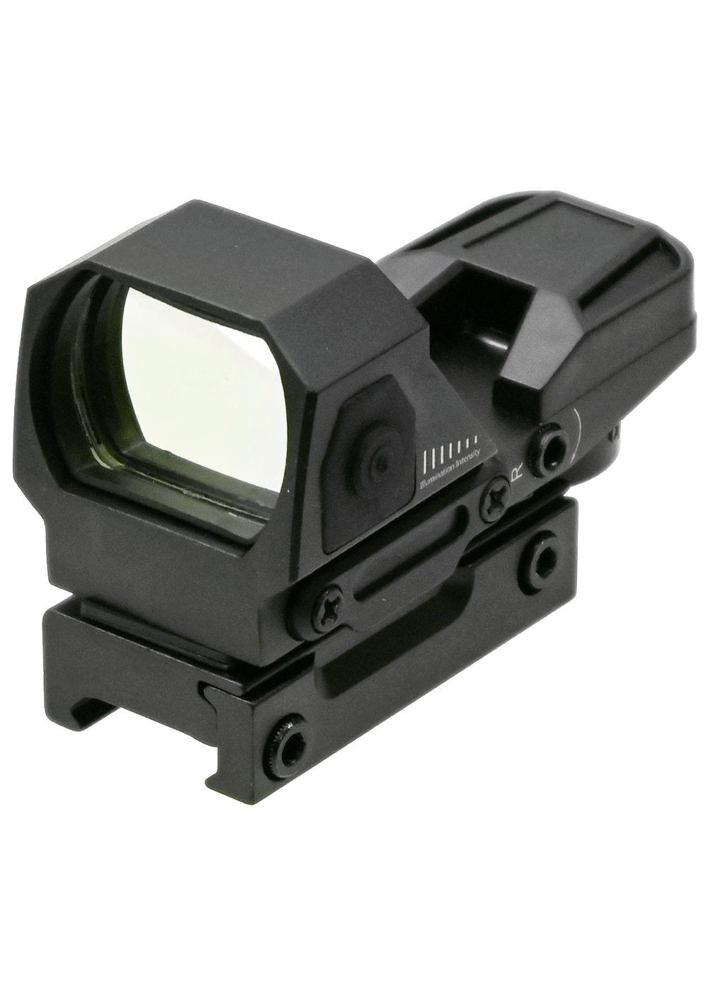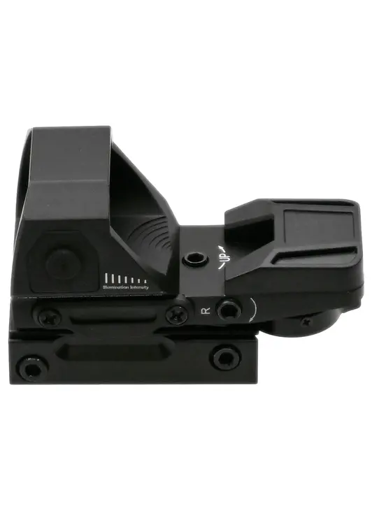 Наблюдение за целью происходит через смотровое окно размером 33x22 мм, на котором проецируется метка красного или зеленого оттенка. Переключение марки осуществляется поворотом тумблера на тыльной части корпуса, при этом на выбор стрелку предоставляется 4 типа перекрестия с точкой по центру размером 3 MOA. Линза обработана высветляющим покрытием по технологии FMC, повышающим контрастность изображения, что полезно при работе в условиях сумерек.
