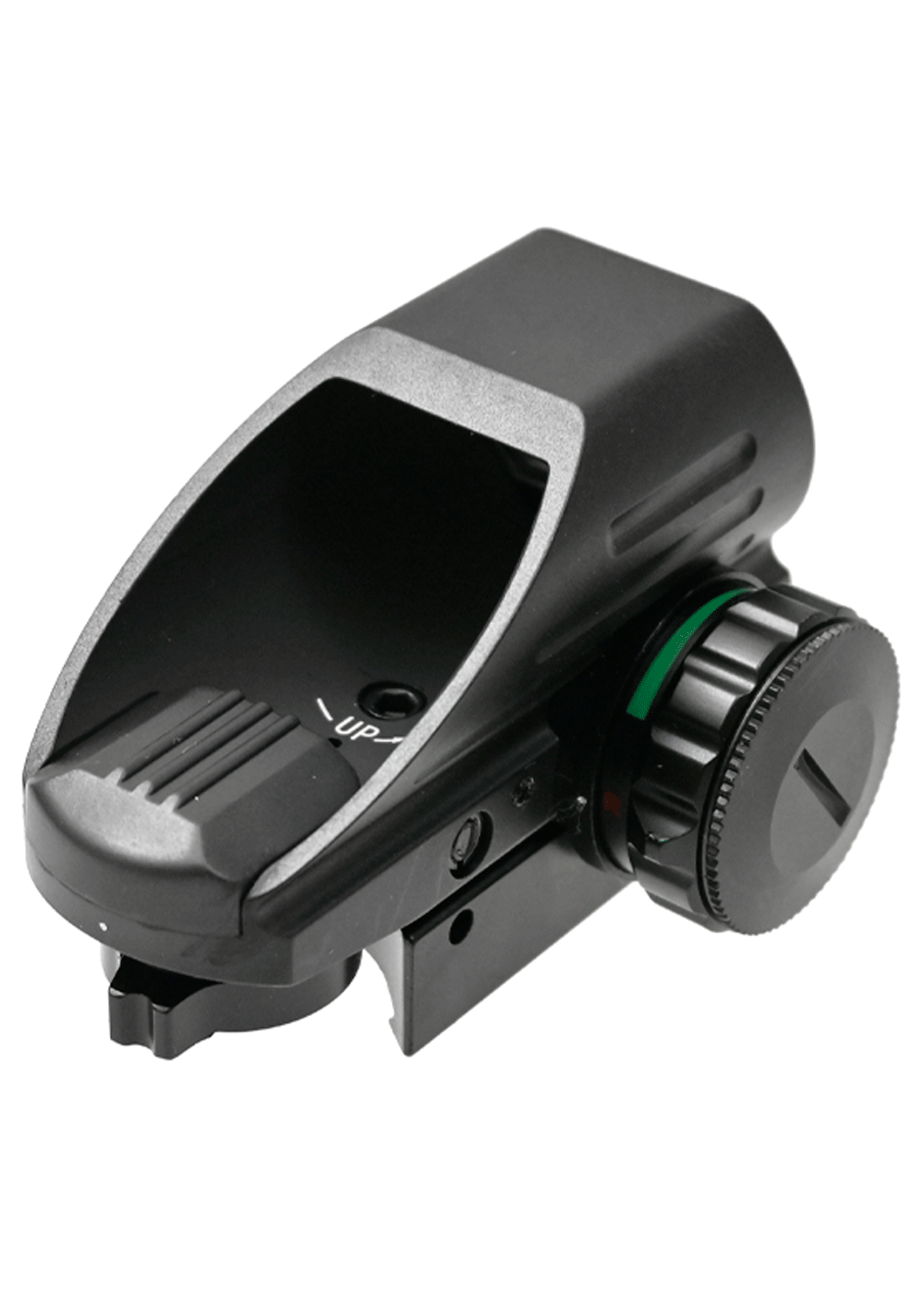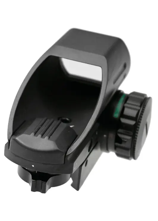 В роли главного материала при изготовлении этого коллиматорного прицела выступает алюминиевый сплав с повышенными показателями стойкости к образованию ржавчины от воздействия влаги. Помимо указанного, поверхность покрывается матовой порошковой краской, что придает эстетичный внешний вид и предотвращает появление потертостей. Также за счет выбора такого металла устройство наделено пониженной массой в 180 грамм, что допускает установку на оружие без нарушения развесовки.