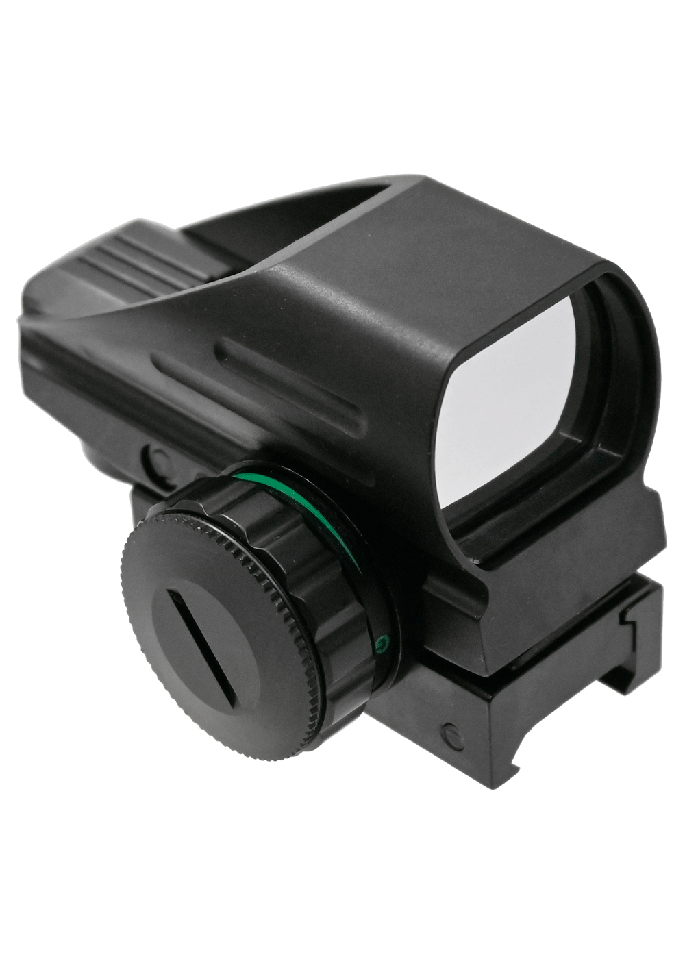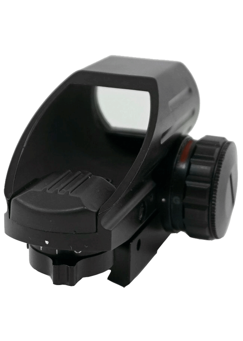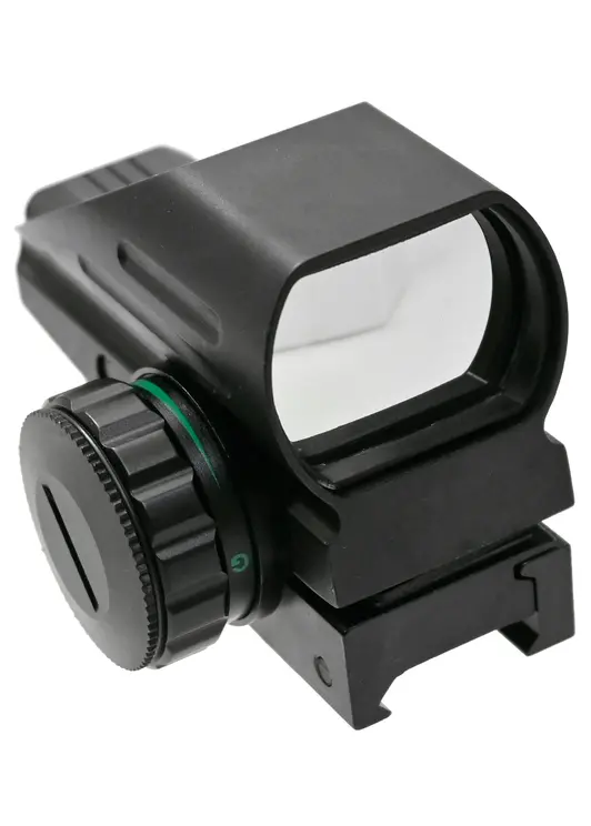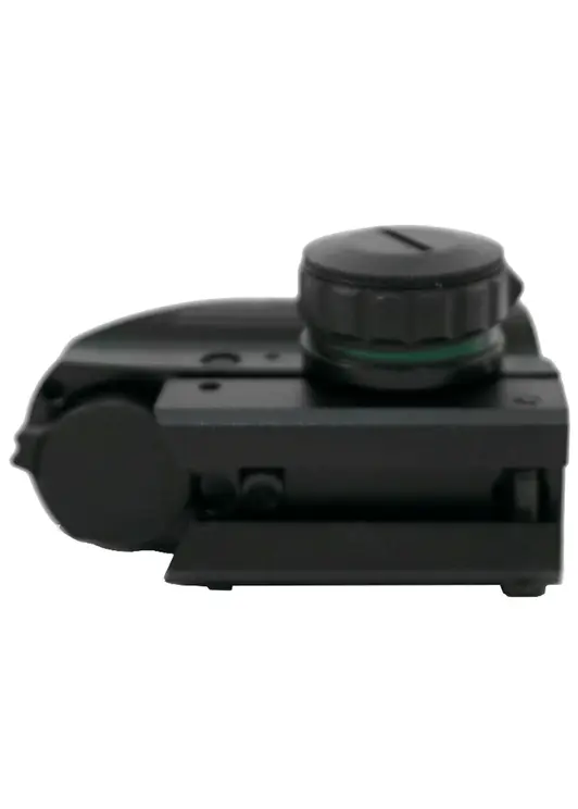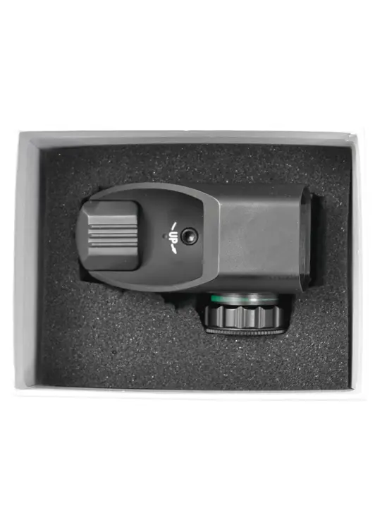 Для обзора или отслеживания выбранной цели или мишени на обозреваемом экземпляре применяется линза с габаритами 22х33 миллиметра, благодаря которой угол обзора на 100 метров будет составлять 9 градусов. Все регулировки этого коллиматора вводятся путем прокрутки юстировочных механизмов, находящихся на корпусе, а за счет использования только механических узлов переключать прицельную сетку и подсветку будет удобно в перчатках или при плохой погоде. Также для защиты от случайного прокручивания барабанов в комплекте поставки расположены защитные крышки.