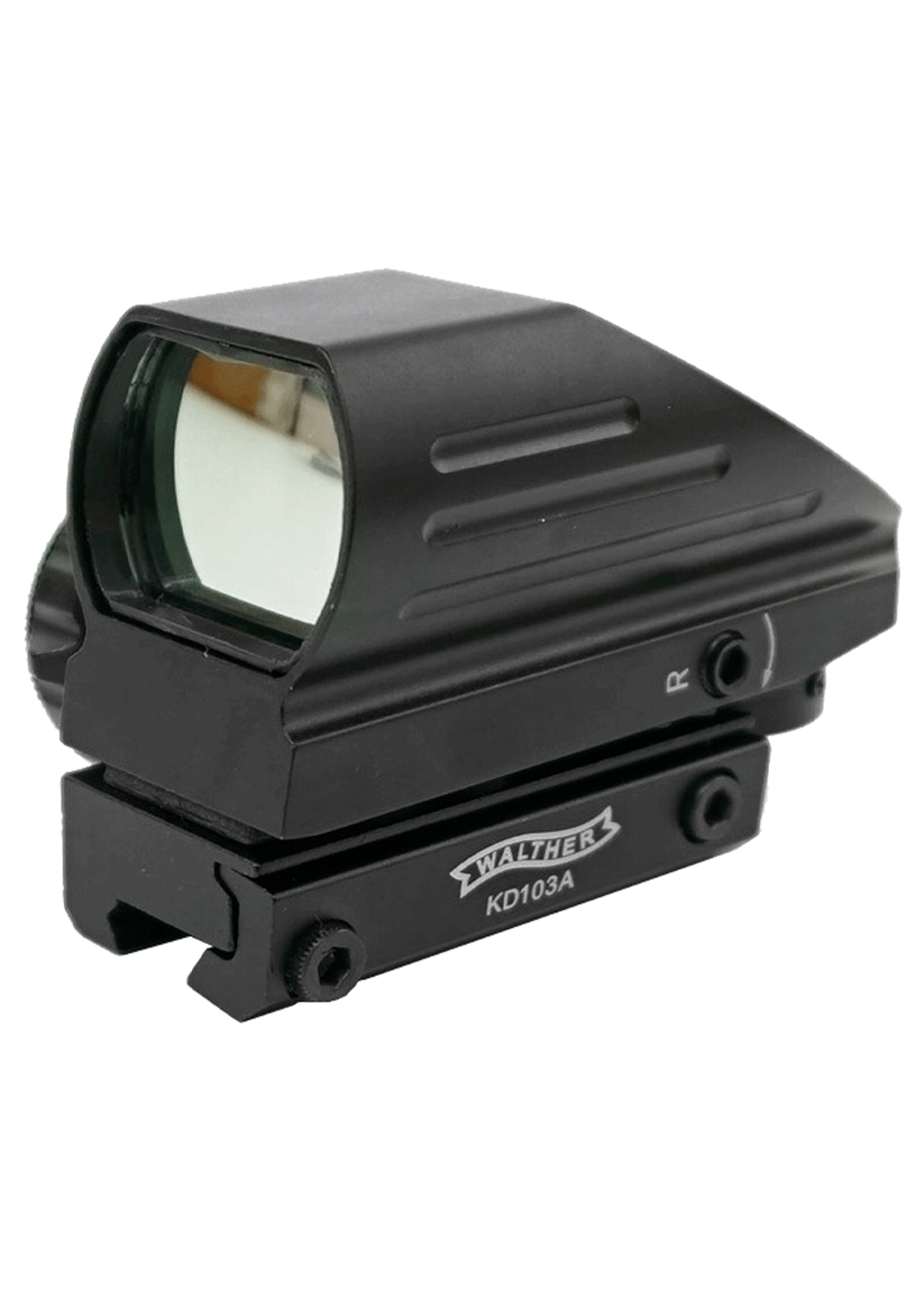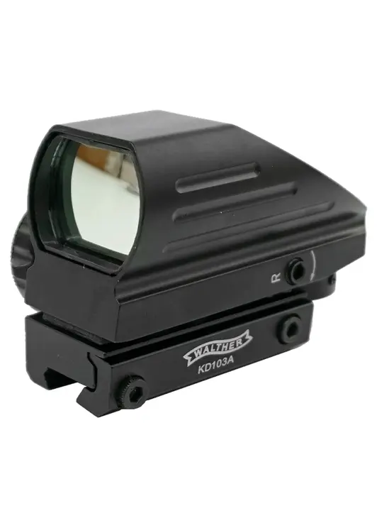 Обозреваемая модель Walther 103 BH-KWL01 предполагает установку на рельсовые направляющие Вивер 22 мм или Пикатинни с идентичной шириной. Прицел оснащен неизменяемым приближением в 1 крат, и за счет такого увеличения, а также благодаря повышенным размерам линзы в 22х33 миллиметра стрелок сможет быстро наводиться на цель или отслеживать ее.