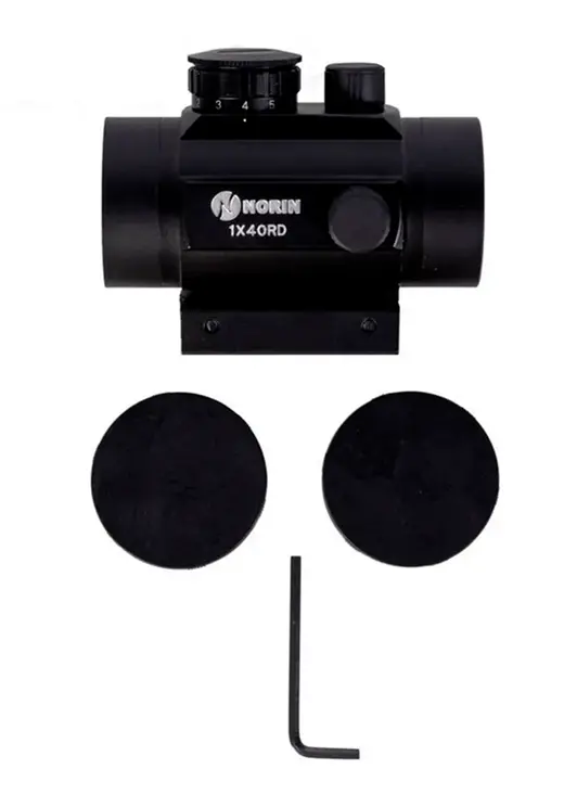 Прицел NORIN 1x40 RD Collimator выглядит в качестве простейшего коллиматорного прицела и применяется для пневматического оружия. Данное изделие причисляется к одному из самых дешевых коллиматорных приборов и доступен каждому владельцу пневматики.