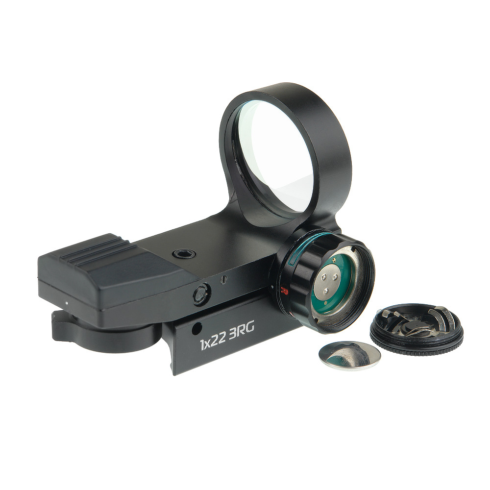 Veber Пневматика 1х22 3RG – коллиматорный прицел с 4 вариантами прицельной марки для спортивной и развлекательной стрельбы в различных, в том числе самых сложных условиях. Компактный прибор обеспечивает широкое поле зрения, позволяет прицеливаться, используя оба глаза, и стрелять быстро, навскидку, по стремительно перемещающейся мишени. Просветляющее покрытие определяет высокую светопропускающую способность прицела. Видимое через окуляр изображение – яркое, без искажения цвета, четкое даже в сумерках или в пасмурную погоду. Тонкая рамка линзы позволяет сосредоточиться на прицеливании.