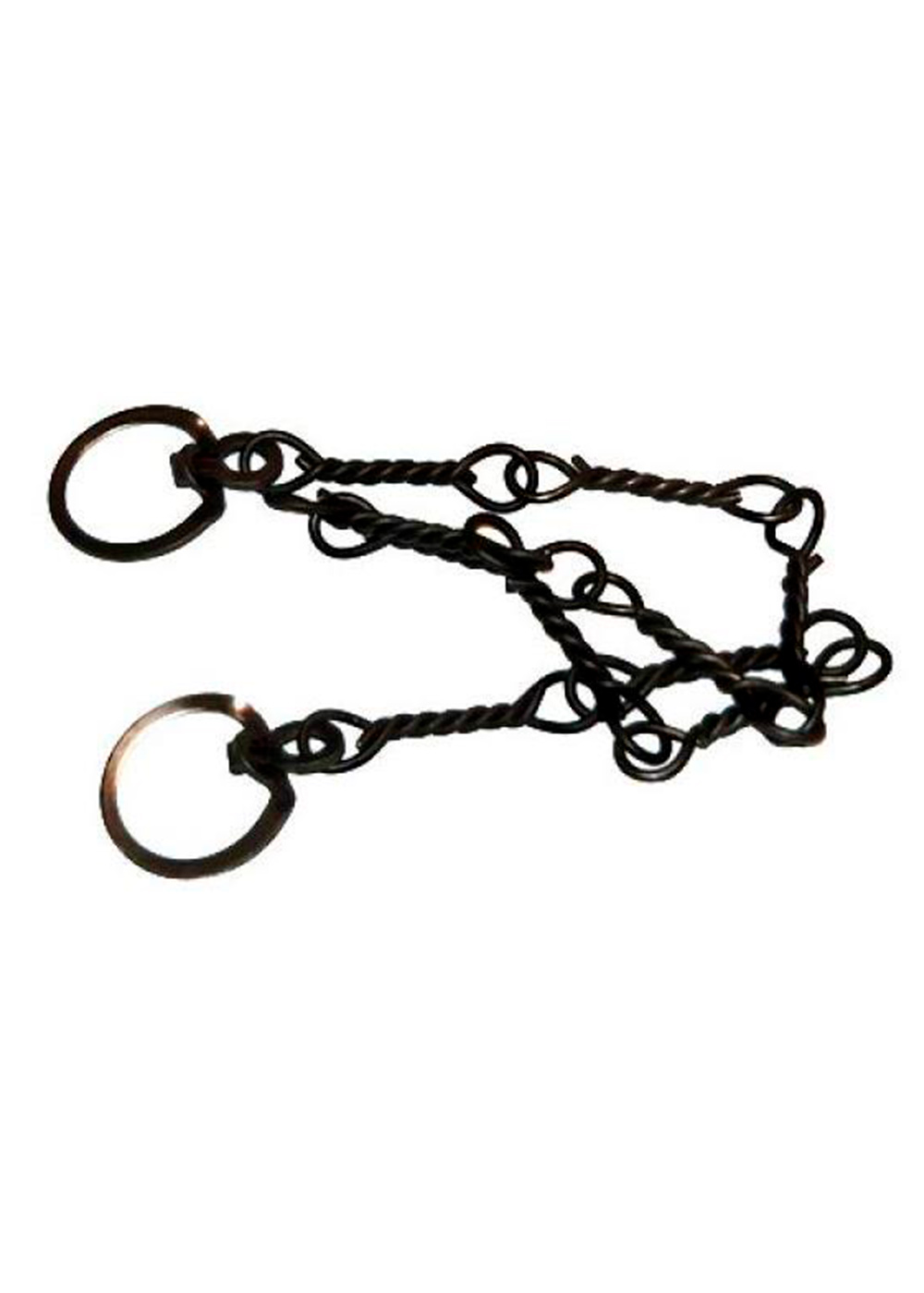 Цепь выполнена из витой проволоки и предназначена для совместного использования с капканами №2,3 (лисица и бобер). Цепь из витой проволоки при минимальном весе с запасом обеспечивает прочность, необходимую для удержания пойманного зверя. В конец цепи ставится дополнительный вертлюг с кольцом.Характеристики: