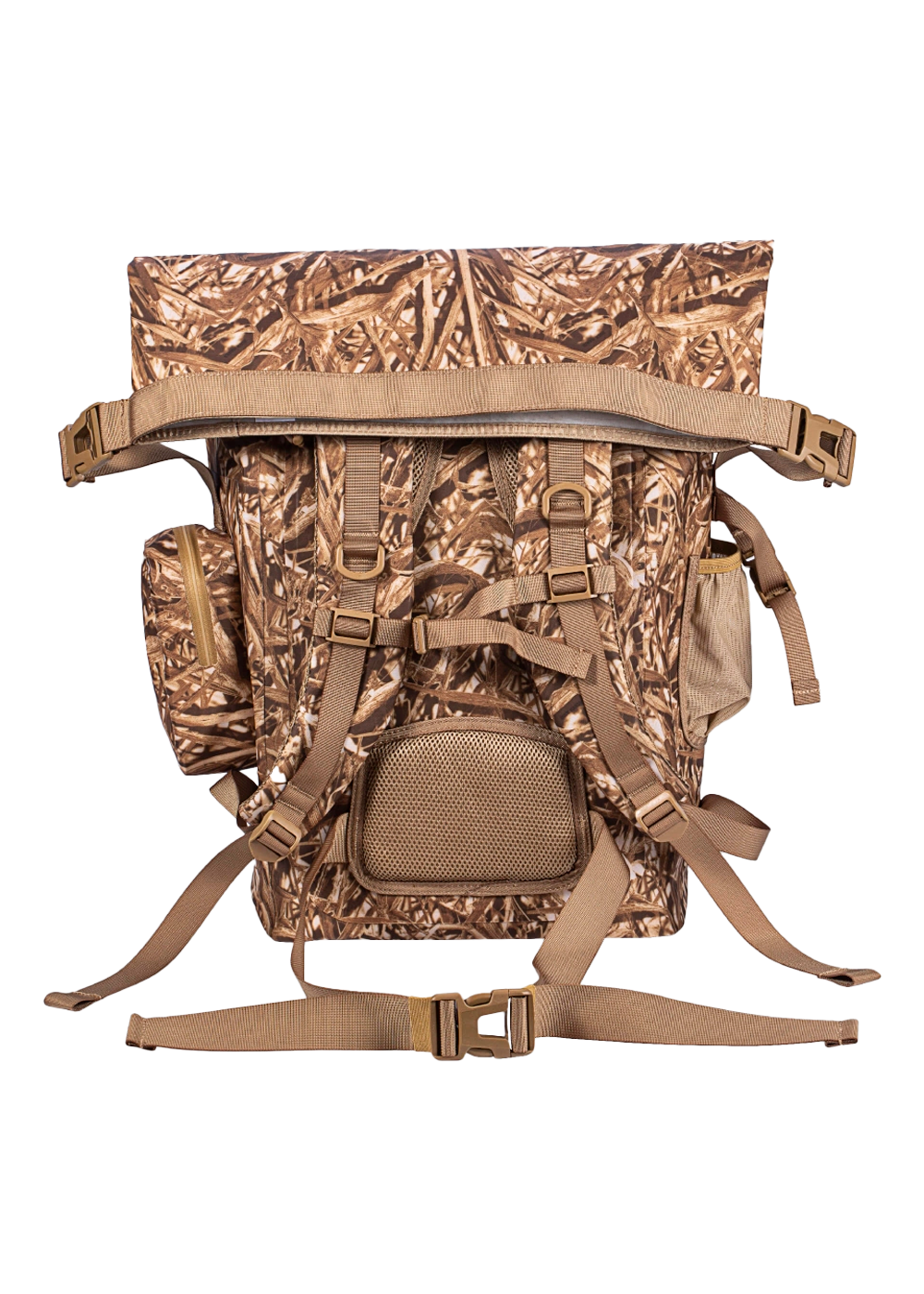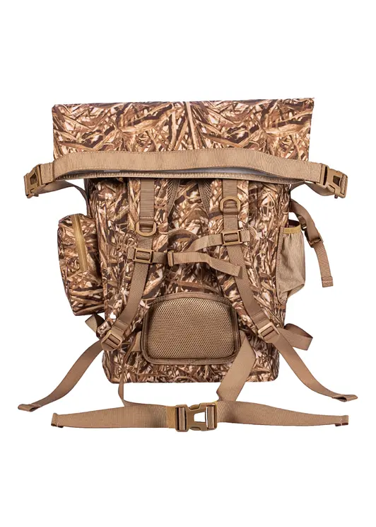 Водонепроницаемый рюкзак для охоты Duck Mania. Объем рюкзака 45 литров. Выполнена из современного, прочного, легкого и водонепроницаемого материала TPU. Выдерживает большие нагрузки, нежели резина, эластичнее в два раза, прочнее в два раза, легко восстанавливается после деформации. Данный материал не реагирует на масла, не сцепляется с грязью и изнашивается в три раза медленнее. Качественная и высокопрочная фурнитура подобрана специальная для суровых условий эксплуатации. Спина рюкзака имеет мягкие накладки. Плечевые ремни усилены и дополнительно вшиты мягкие накладки для удобства переноски. Поясной ремень имеет усиленные фастексы. На внешней стороне и сбоку, расположены два отдельных объемных кармана на влагозащитных молниях. Рюкзак отлично подходит для переноски мяса, а также для снаряжения в условиях повышенной влажности. Рекомендована для охотников и рыболовов.