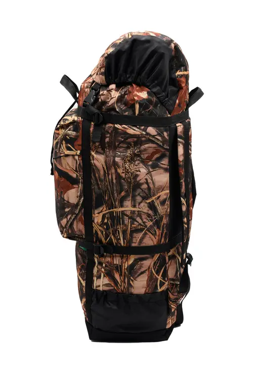 Рюкзак HUNTSMAN Боровик объемом 60 литров — это практичное и недорогое снаряжение для охоты, рыбалки или поездок на дачу. Маскирующая расцветка в цвете камыш позволяет оставаться незаметным в природной среде. Внешняя ткань с PVC-пропиткой и водозащитная молния на переднем кармане обеспечивают защиту вещей от влаги даже при сильном ливне или мокром снеге. Основной объем регулируется четырьмя боковыми стропами, которые также можно использовать для крепления спального мешка, коврика или охотничьего топорика. Большой фронтальный карман предназначен для хранения бинокля, коробки с патронами, ножа, спичек, теплых перчаток и манков для охоты. Подходит для транспортировки вещей при поездках в кемпинг или на фестиваль.