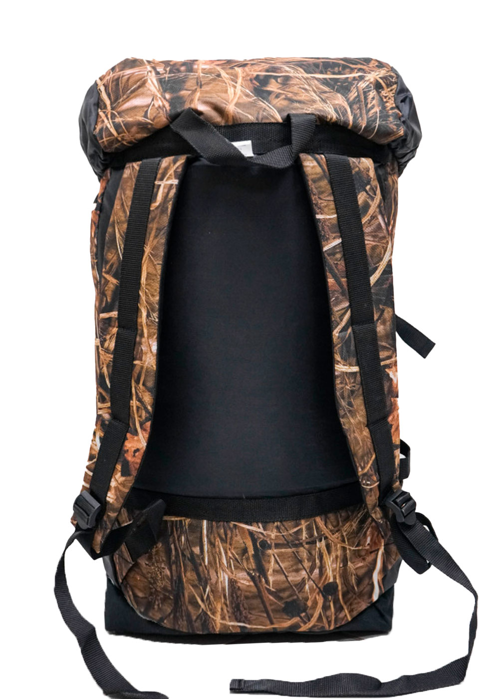 Рюкзак изготовлен из прочной непромокаемой ткани "oxford" с пропиткой PVC. Плечевые регулируемые лямки и спинка уплотнены вспененным полиэтиленом (изолон). Один внешний объёмный карман на "молнии" под клапаном. Нижние боковые открытые карманы для крепления длинномерных предметов. Боковые стяжки на фастексах фиксируют длинномерные предметы и регулируют рюкзак по объёму. Клапан рюкзака так же застёгивается с помощью фастексов. Тубус для дополнительного увеличения объёма утягивается шнуром. Водонепроницаемое дно. Тк. Оксфорд 600D PVC