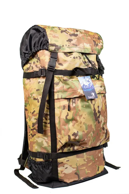 Рюкзак «Турист» объёмом 60 литров изготовлен из ткани Oxford 600D PVC цвета Multicam. Он имеет плечевые регулируемые лямки и спинку, уплотнённые вспененным полиэтиленом (изолоном), один внешний объёмный карман на молнии под клапаном, нижние боковые открытые карманы для крепления длинномерных предметов и боковые стяжки на фастексах для фиксации и регулировки объёма рюкзака. Клапан рюкзака также застёгивается с помощью фастексов.