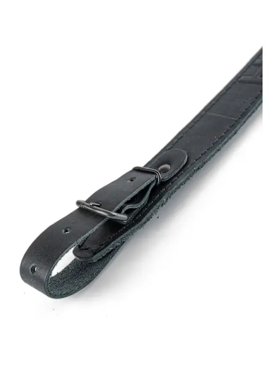 Погонный ремень из натуральной кожи чёрного цвета — надёжное и практичное решение для комфортного ношения ружья. Модель оснащена специальной противоскользящей стропой, которая надёжно удерживает оружие на плече во время передвижения.