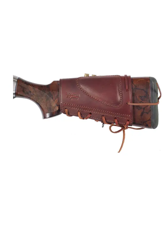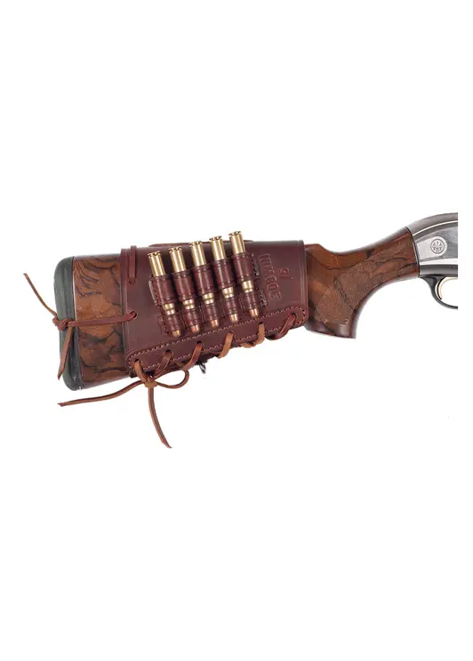 Патронташ на оружейный приклад открытого типа от Российского производителя Holster (Хольстер) рассчитан на 5 патронов 223-го калибра. Патроны размещаются в один ряд. Патронташ изготовлен из высококачественной кожи. Он крепится на приклад оружия с помощью шлевок.