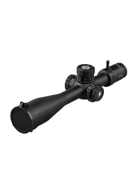 На линзу в первой фокальной плоскости рассматриваемой оптики Discovery ED-PRS 4-20x52SFIR наносится специализированная баллистическая марка, форм-фактор которой основан на популярной сетке Mil-Dot. Визуально такой тип прицельного элемента представляет собой прямоугольное перекрестие вертикальной и горизонтальной нитей, на которых на определенном расстоянии друг от друга нанесены отметки, применяющиеся для внесения поправок на ветер и другие факторы, влияющие на траекторию движения снаряда.