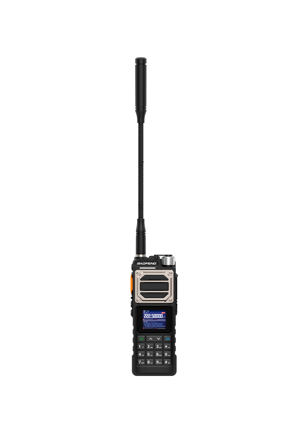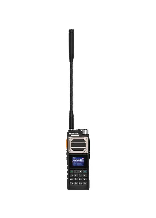 Baofeng UV25 10W – аналоговая радиостанция увеличенного размера с цветным ЖК-дисплеем 1.77’’, крупными кнопками и аккумулятором 2800 мАч. У рации гибкая антенна SMA-Female типа «гусиная шея» длиной 33 см.