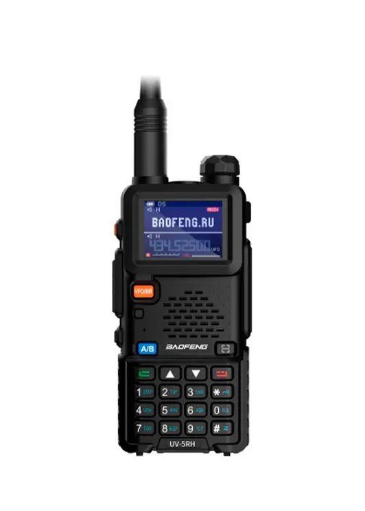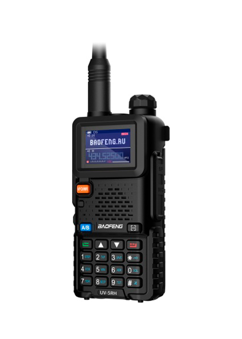 Baofeng UV-5RH 10W— новинка в линейке 5R от Baofeng. У нее увеличенный аккумулятор 2500 мАч, цветной дисплей, расширенный диапазон, аналоговый скремблер, разъем Type-C отдельная кнопка для поиска каналов и беспроводного копирования частоты другой рации.