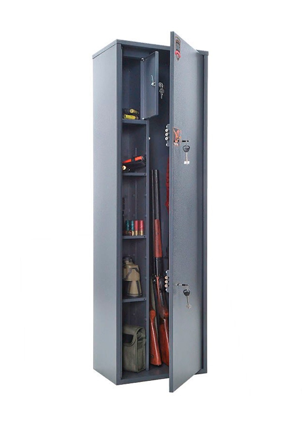 Сейф предназначен для безопасного хранения огнестрельного оружия и имеет все необходимые сертификаты соответствия требованиям МВД РФ к хранению оружия. Сейф полностью соответствует требованиям ст.59 Постановления правительства РФ №814 от 21 июля 1998 года «О мерах по регулированию гражданского и служебного оружия и патронов к нему на территории РФ».