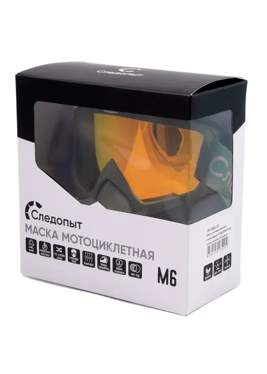 Маска является важной частью мотоэкипировки, а так же подходит для любого занятия активными видами спорта на открытом воздухе и зимой, и летом. Маска мотоциклетная/снегоходная СЛЕДОПЫТ M6 с линзой chrome chamelion для мотокросса не только защищает глаза от вредного воздействия солнечных лучей и ультрафиолетового излучения, но и обеспечивает дополнительную защиту от ветра, пыли, грязи и других неблагоприятных факторов окружающей среды.