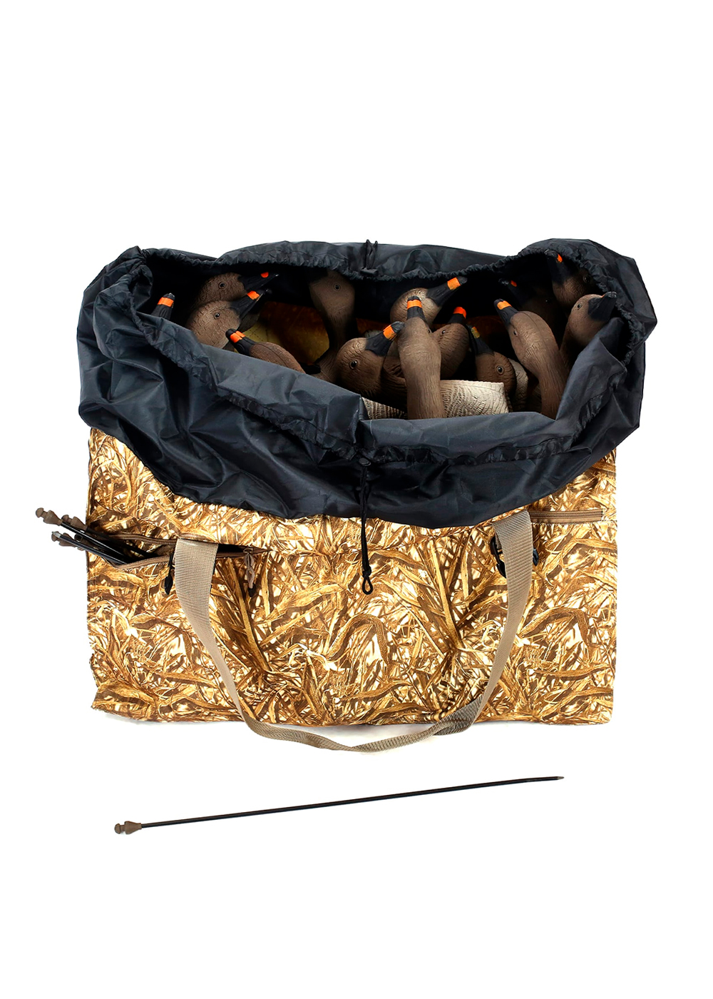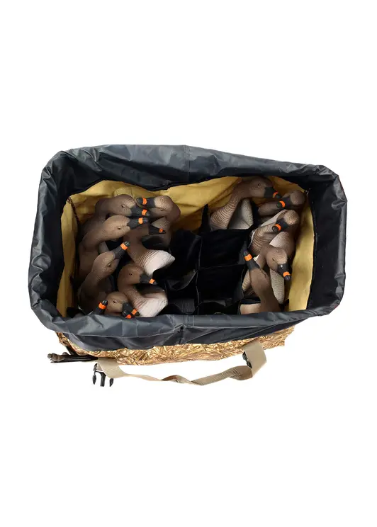 Сумка PREMIUM GOOSE 20 идеально подходит для охотников, использующих большое количество чучел гусей. Она обеспечивает надежную защиту чучел от влаги и грязи, а также удобство и комфорт при их транспортировке к месту охоты и обратно. Благодаря своей вместимости и функциональным особенностям, эта сумка станет незаменимым аксессуаром для любого охотника. Сумка вмещает до 20 сминаемых чучел гусей, каждое из которых располагается в отдельной ячейке, что предотвращает их перемещение и повреждение во время транспортировки. Прочное дно сумки оснащено дренажной системой, которая позволяет отводить влагу и предотвращает скапливание воды. Клапан-крышка на «молнии» надежно защищает содержимое от попадания воды и грязи, что особенно важно при неблагоприятных погодных условиях. Ремень с мягким, прорезиненным наплечником обеспечивает комфорт при длительном ношении сумки на плече. Большой внешний карман на «молнии» предназначен для хранения стоек чучел, что делает сумку еще более функциональной и удобной в использовании. Цвет NW1 “Светлый камыш” помогает сумке сливаться с окружающей средой, делая её менее заметной для птиц.