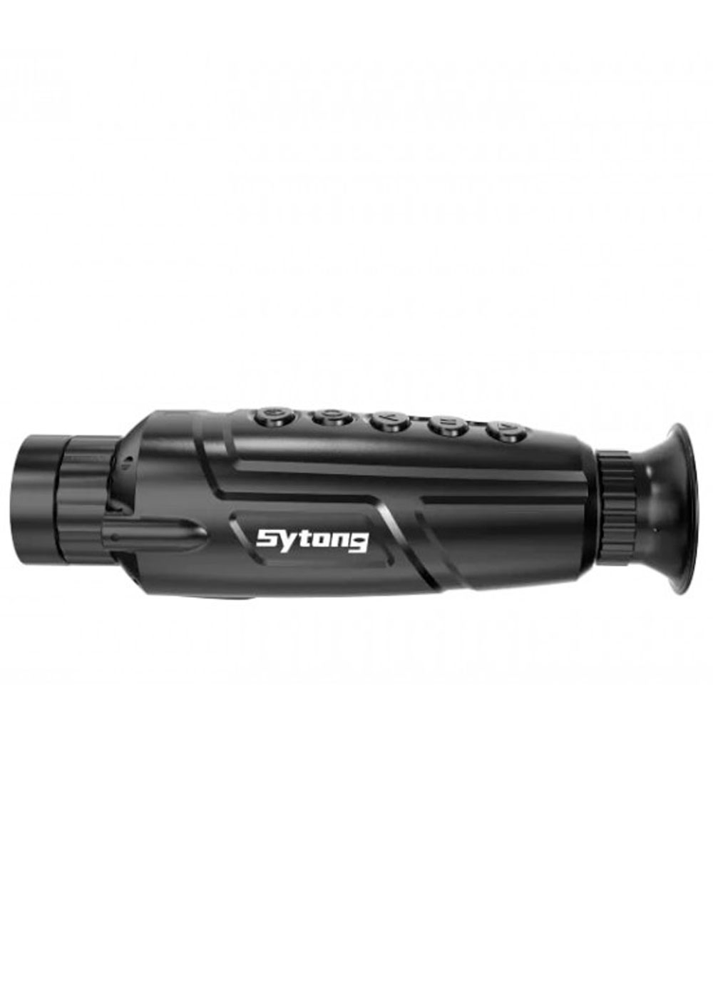 Тепловизионный монокуляр Sytong YS03-35 от известной китайской компании, которая прославилась на рынке благодаря своей высокотехнологичной продукции. Бренд Sytong специализируется на производстве, продаже и обслуживании тепловизионной и ночной тактической оптики. В России продукция бренда Sytong представлена большим ассортиментом приборов для охоты и наблюдения. Отдельное внимание заслуживает ряд ночных, тепловизионных прицелов, а также цифровых насадок, производимых данной компанией по последним мировым технологиям. Тепловизионный монокуляр Sytong YS03-35 - уникальная модель со множеством различных функций. Данная модель тепловизора отличается своей универсальностью и идеально подойдет для охоты, туризма, поисково-спасательных работ и других целей. Модель монокуляра-тепловизора оснащена матрицей 384х288 и объективом 35 мм с переменной кратностью 1.7х - 13.6х. Монокуляр для охоты Сайтонг УС03 отличается внушительной дальностью обнаружения объектов - до.1,25 км. Монокуляр способен обеспечить четкую и плавную картинку высокого качества в холодную погоду и даже во время дождя. Немаловажной функцией монокуляра для охоты Sytong YS03-35 является возможность диоптрийной настройки, которая позволяет скорректировать оптику под зрение конкретного человека (+/- 5 диоптрий). Еще одной важной функцией тепловизионного монокуляра является встроенный рекордер, который обеспечит возможность записать процесс охоты. Для того, чтобы сохранить фото и видео, монокуляр обладает слотом под карту памяти до 128 гб. Карта памяти приобретается отдельно. Встроенный аккумулятор на 6000 мАч обеспечит продолжительную работу монокуляра. Вес монокуляра составляет 570 г., длина - 210 мм.