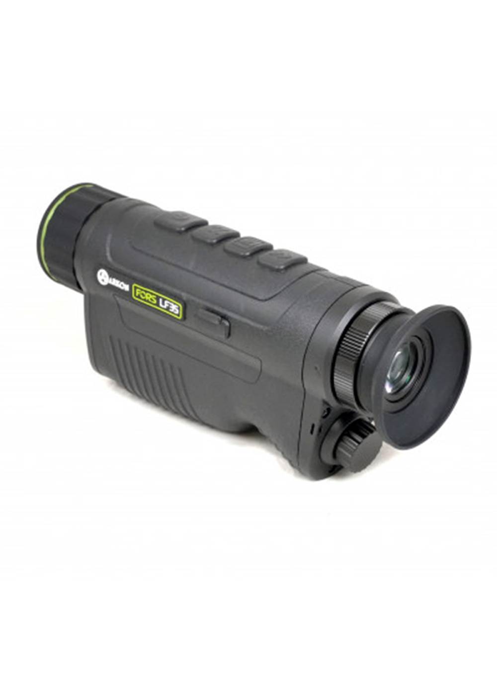 Тепловизионный монокуляр ARKON Fors LF35 — многофункциональный прибор для обнаружения и идентификации теплоконтрастных объектов в сложных условиях наблюдения. Оснащен высокочувствительным сенсором VOx с разрешением 384×288 пикселей и германиевой оптикой 35 мм, обеспечивающей оптическое увеличение 3,8× с возможностью цифрового зума до 8× (максимальное увеличение 30,4×). Прибор оборудован встроенным лазерным дальномером с дальностью измерения до 1200 метров и погрешностью ±1 метр.