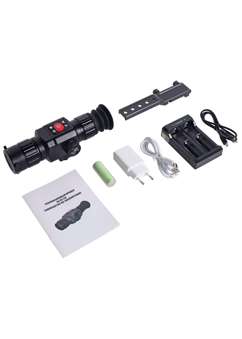 В условиях ограниченной видимости порой бывает трудно разглядеть таящуюся в темноте дичь. В этих условиях лучше всего подойдут тепловизионные прицелы, которые способны обнаружить затаивающуюся дичь на больших расстояниях. Благодаря использованию цифровых технологий, прицел способен фиксировать местонахождение объекта по тепловому излучению и позволяет выследить добычу даже в труднодоступных местах. Прицел тепловизионный 'Hti-C8' отлично подойдет для ночных охотников. Модель имеет категорию защиты IP66, которая указывает на водонепроницаемость устройства. В прицел предустановлено 10 файлов регулировки яркости и контрастности, а также 7 видов линий дифференциации. Окуляр обладает фокусным расстоянием в 20,8 мм, диоптрийной регулировкой ±4SD и видимым увеличением до 12X. Удаление выходного зрачка 32мм, диаметр выходного зрачка 8мм. Инфракрасный объектив оснащен ручной фокусировкой, F-коэффициентом 1,0, фокусным расстоянием в 35 мм, полем зрения в 10,7°×8,0°, и диапазоном фокусировки в > 3 м. Имеется электронный зум x4. Разрешение матрицы 384x288 пикселей с OLED дисплеем на 1024x768 точек и наличием цветовых палитр. Частота матрицы 60 Гц. Прицел оснащен съемной перезаряжаемой литиевой батареей 18500, заряжаемой от USB-C. Автономность батареи составила 6 часов непрерывной работы. Рабочие температуры от -20 до +60. Передача файлов на мобильное устройство или персональный компьютер может быть произведена через интерфейс USB-C. Запись фото и видеоматериала производится на внутреннюю память устройства в 16G. Габариты в мм (ДxШxВ) 238×87×87. Вес 537 гр. «Тепловизионный прицел HTI -C8 (35mm/384*288)» и многие другие товары для охоты, рыбалки и туризма вы сможете найти и приобрести на нашем интернет-магазине.