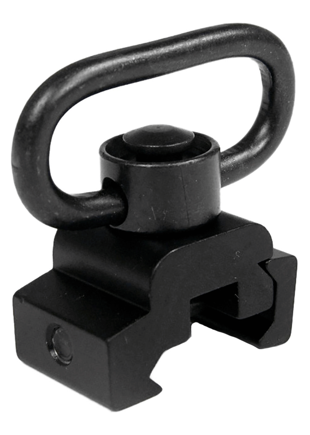 Рассматриваемая QD антабка состоит из двух деталей - основания, крепящегося на планку и непосредственно 35-ти миллиметрового кольца, через которое продевают ленту ремня. Элементы соединены посредством паза, в котором происходит распирание металлических шаров после установки элемента с кольцом. Последние удерживаются до момента нажатия кнопки, которое позволяет разъединить узлы.